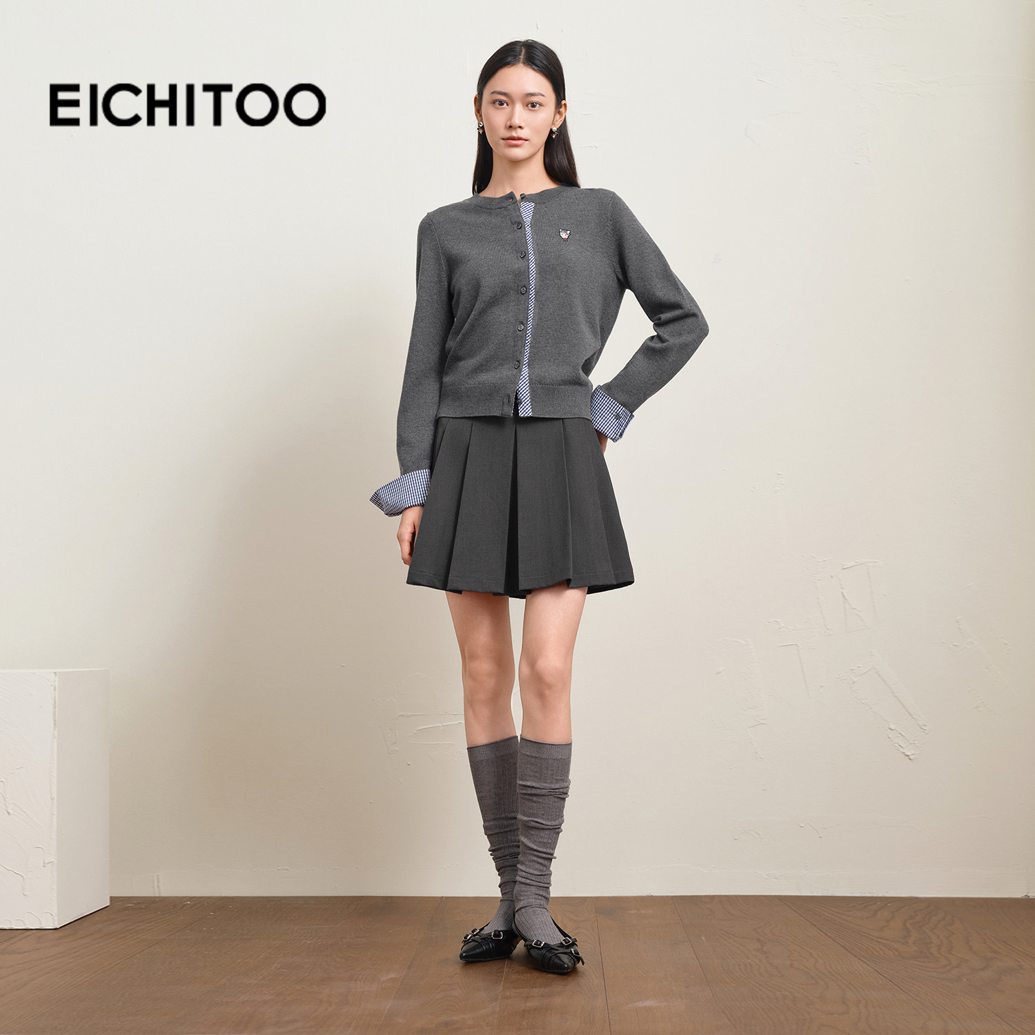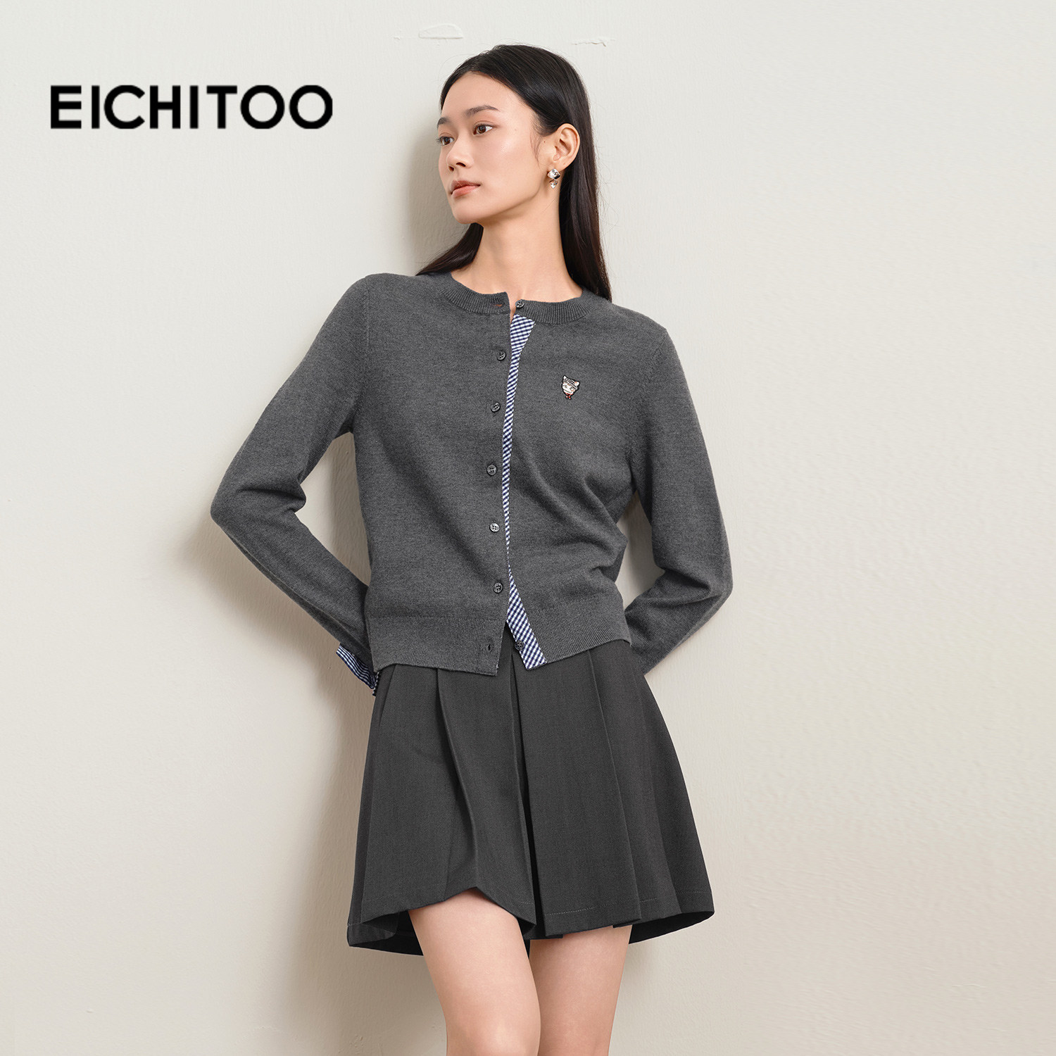 爱居兔含绵羊毛miu系针织开衫女2025年秋季新款刺绣印花软糯外套