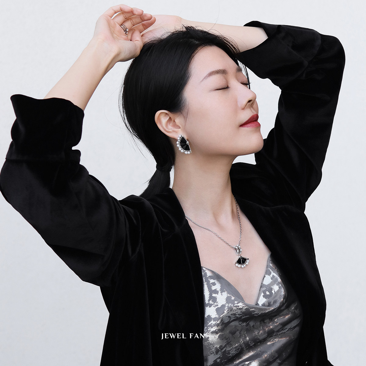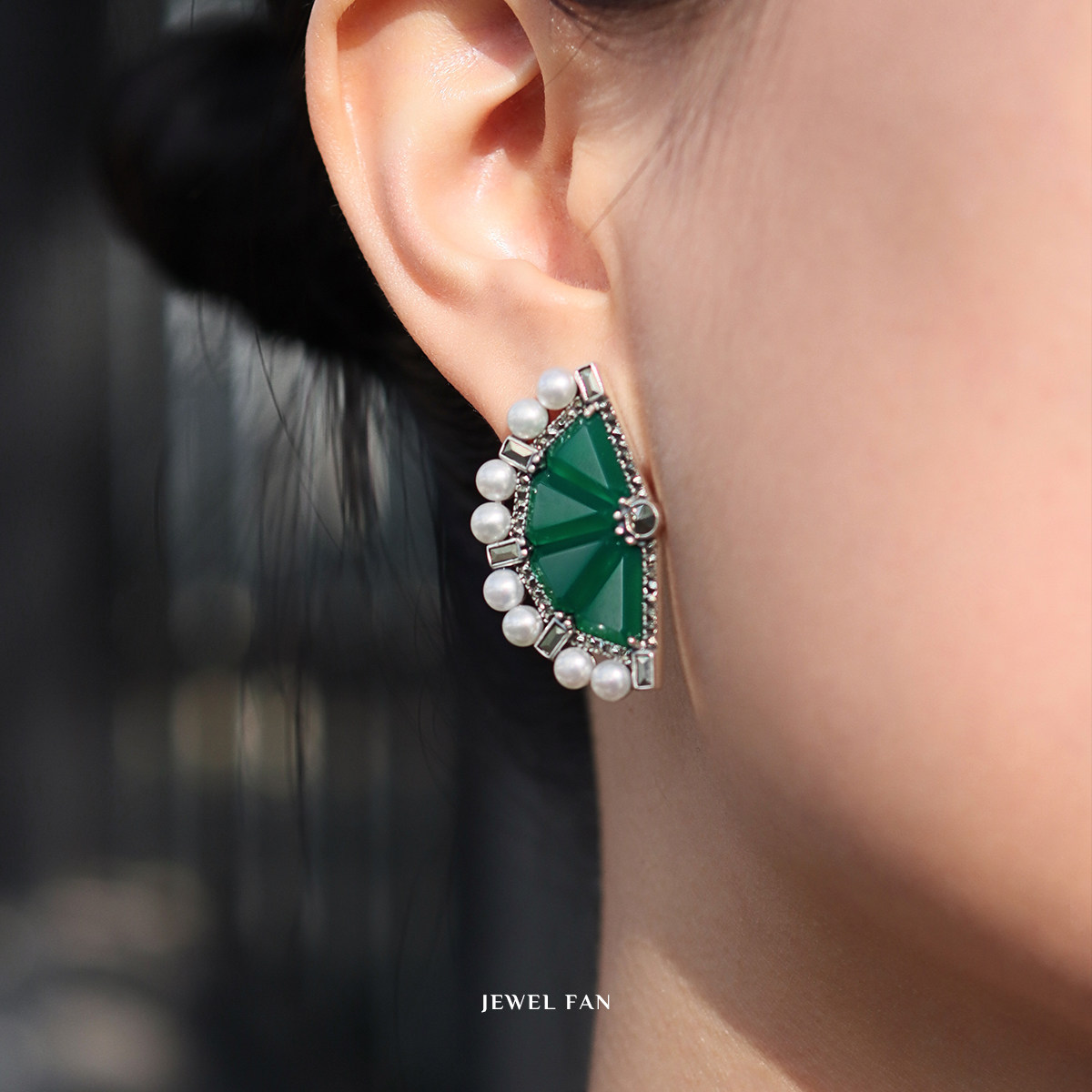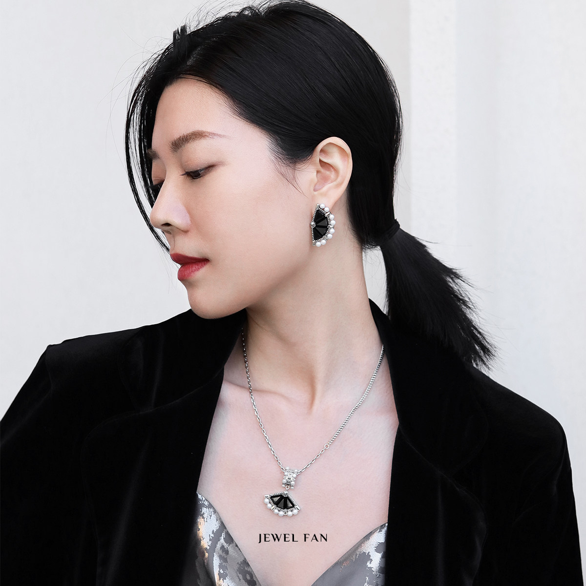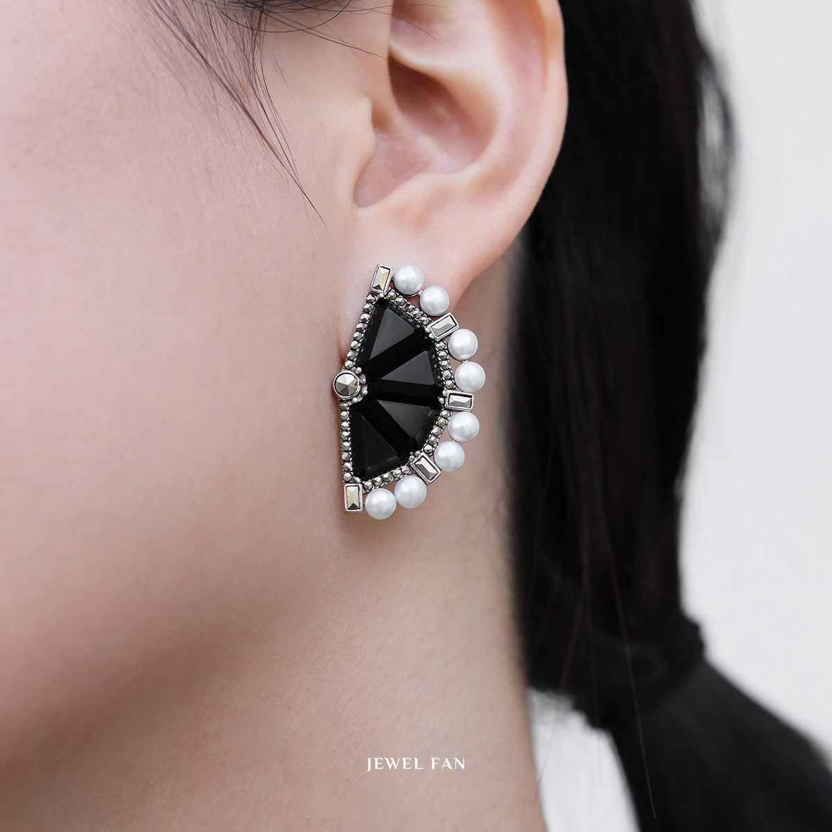 MGS/曼古银珠光宝扇系列耳环黑玛瑙珍珠高级感复古时尚925银耳饰