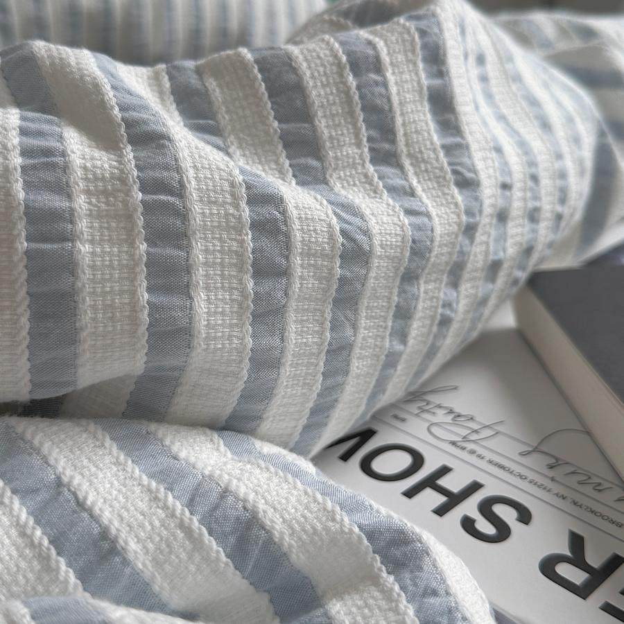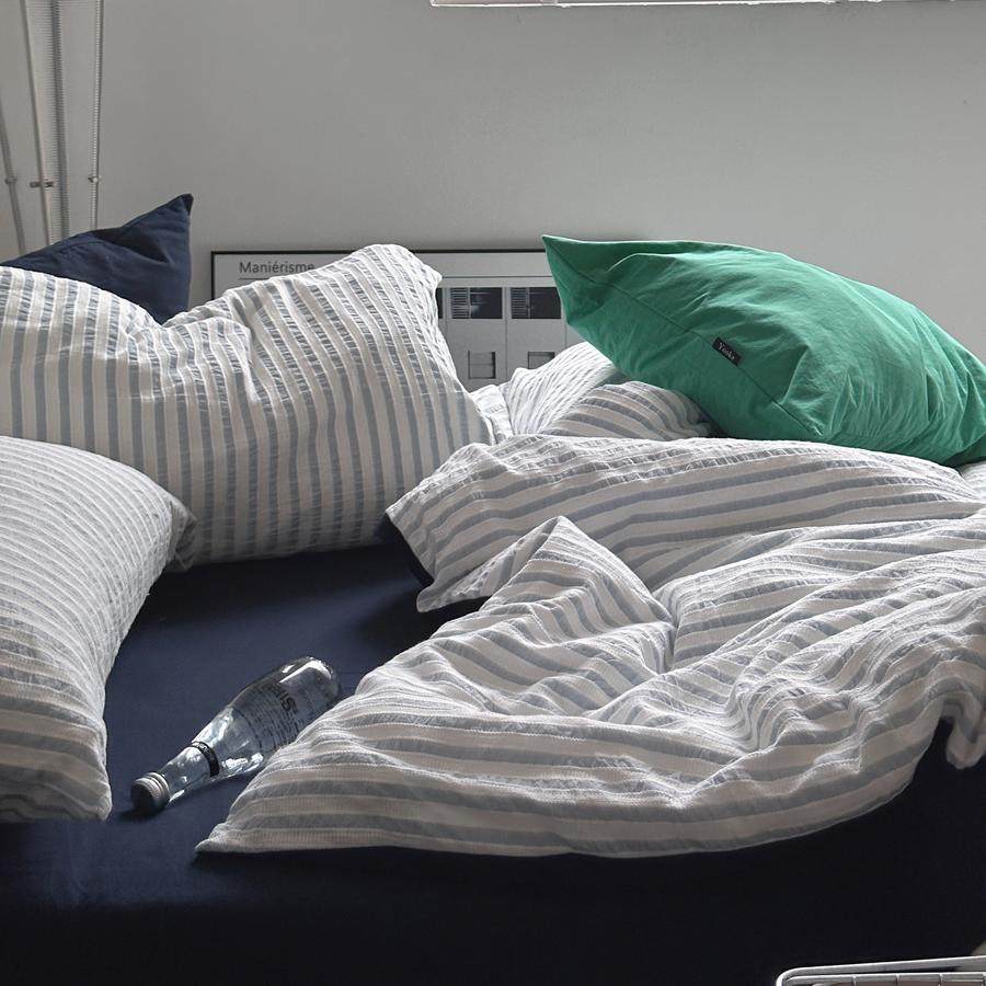 雾蓝色条纹提花藏蓝水洗棉纯棉四件套全棉被套床单1.8m床笠家纺