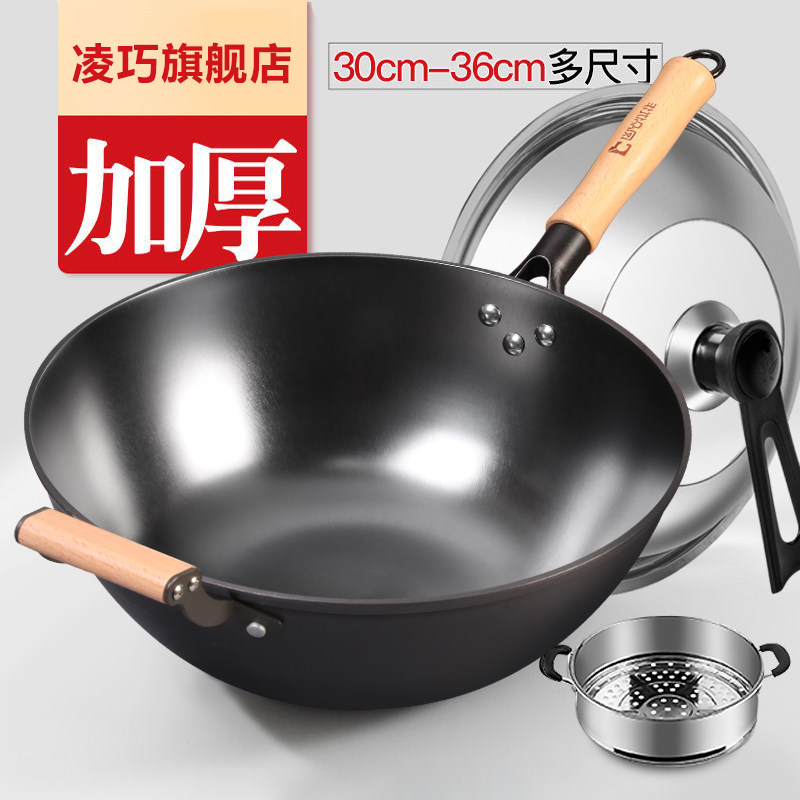 章丘铁锅官方旗舰店正品铁锅炒锅手工锻打无涂层不粘炒菜家用轻音