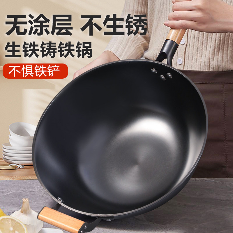 凌巧老式铸铁炒锅家用炒菜锅圆平底无涂层电磁炉专用煤气灶生铁锅