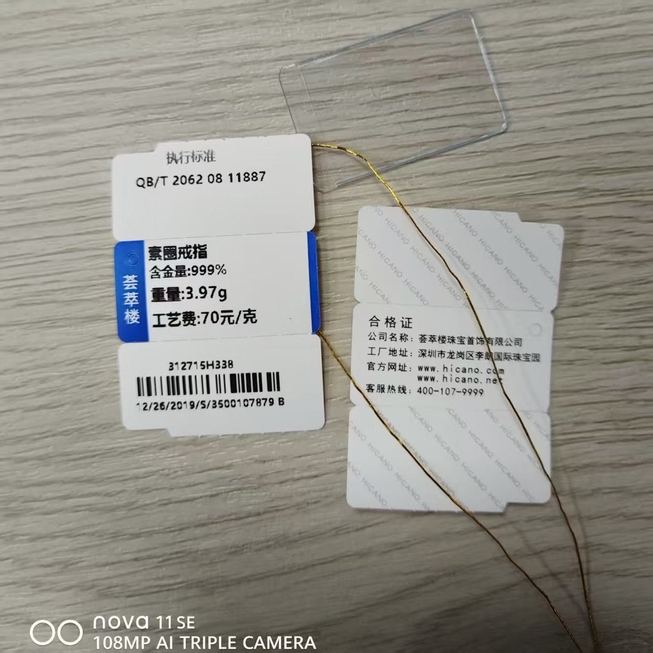 三联珠宝标签一件起打印定制金银首饰翡翠价格吊牌三折无胶二维码