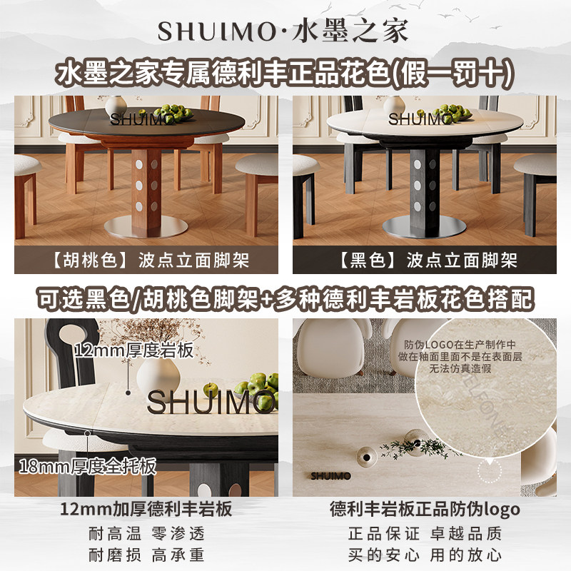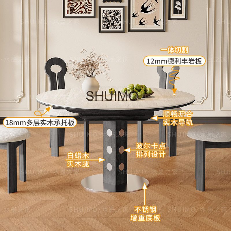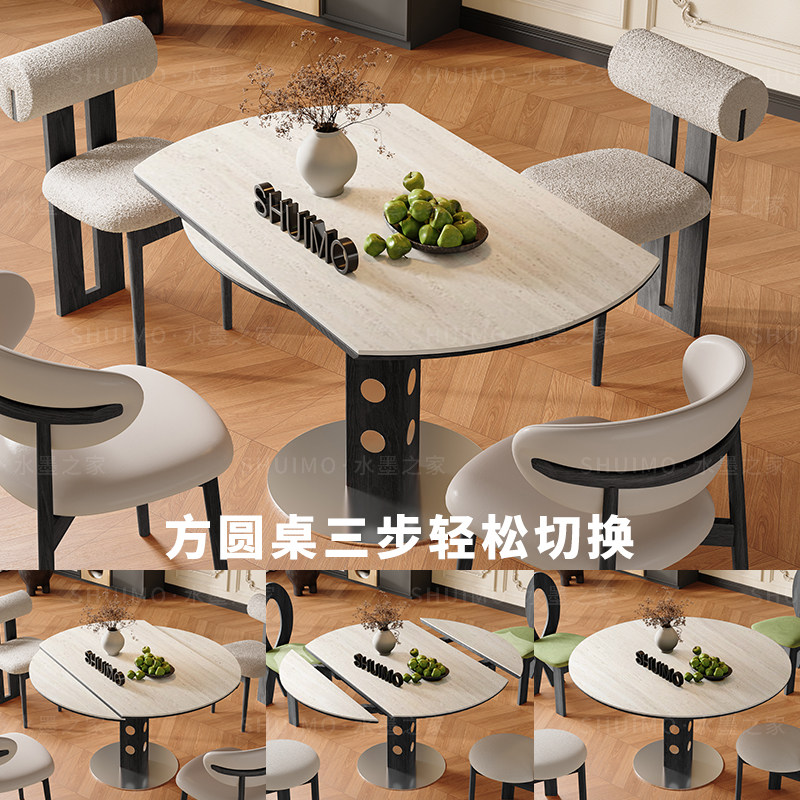 德利丰洞石岩板伸缩餐桌家用小户型实木包豪斯折叠桌方圆两用饭桌