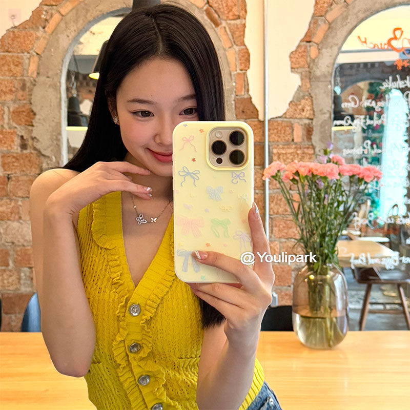 由里公园ins小众少女心彩色星星蝴蝶结挂链15适用17pro苹果17ProMax手机壳iPhone16全包17韩系14Promax保护套