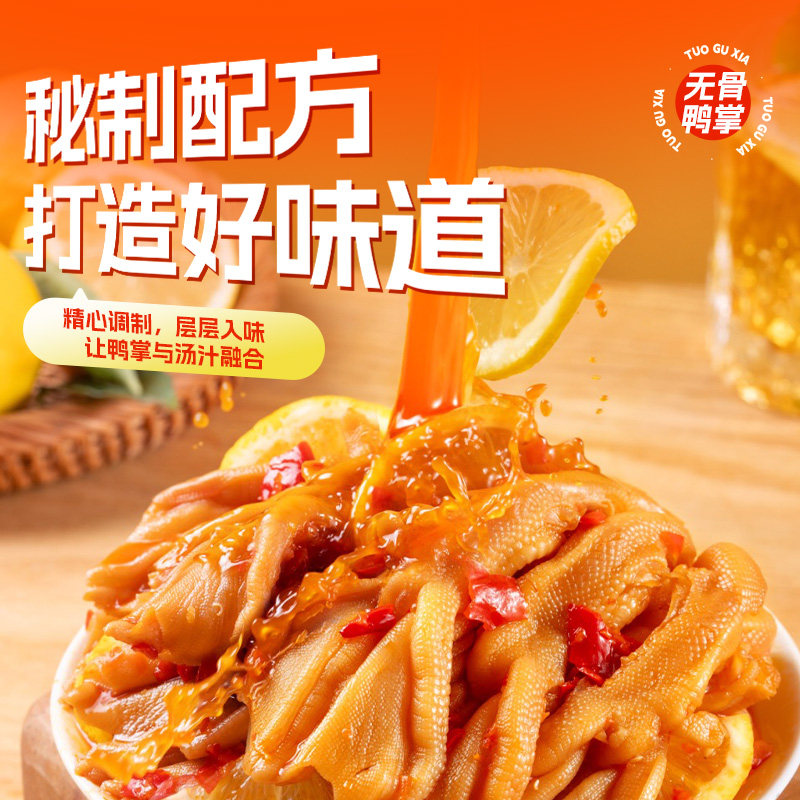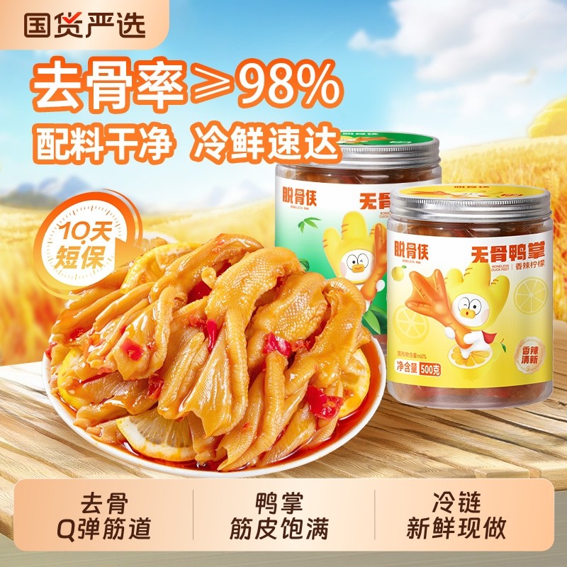 脱骨侠去骨鸭掌无骨鸭脚柠檬酸速食生鲜零食鸭爪卤味鸭货泡椒藤椒