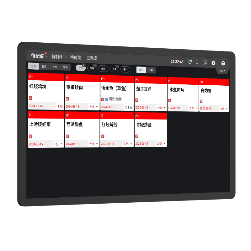 KDS厨显后厨智能电子显示屏触摸富掌柜银豹美团收银管理系统软件专用餐厅酒楼餐饮厨房制作配菜传菜催划菜屏