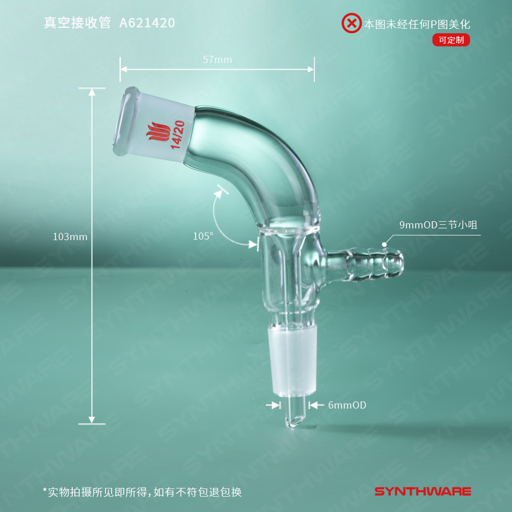 欣维尔真空接收管牛角管接受管标准口蒸馏尾接管真空尾接管蒸馏管玻璃105度真空接收管A62/64弯形接收管B28