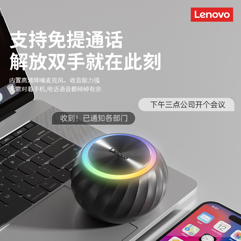 联想音箱ED100桌面电脑音响小巧便携炫彩灯效电脑台式电脑音响