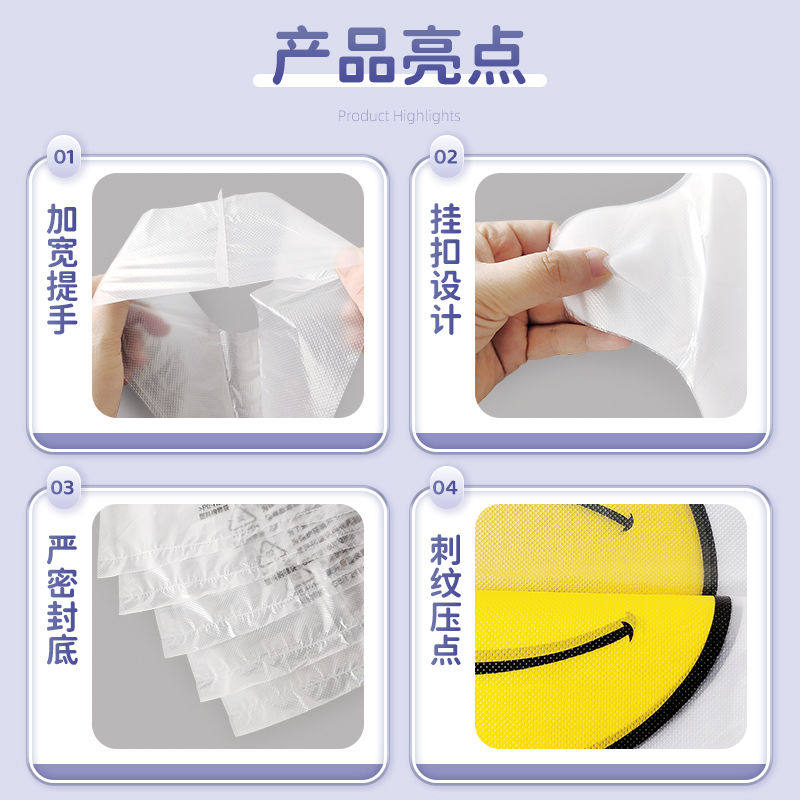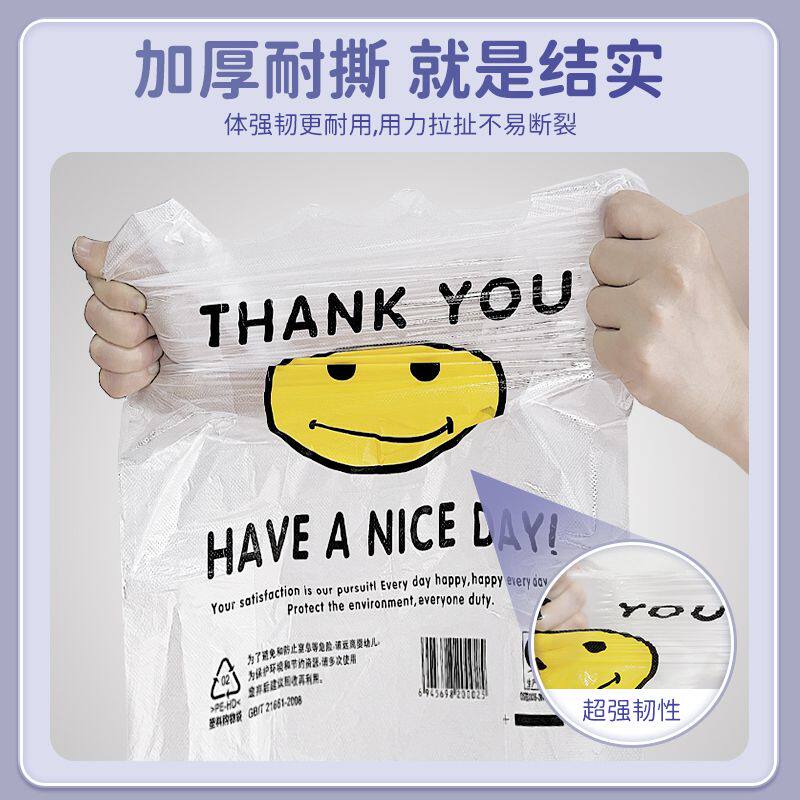 笑脸加厚透明塑料袋外卖垃圾袋商用打包袋购物袋方便手提袋子食品