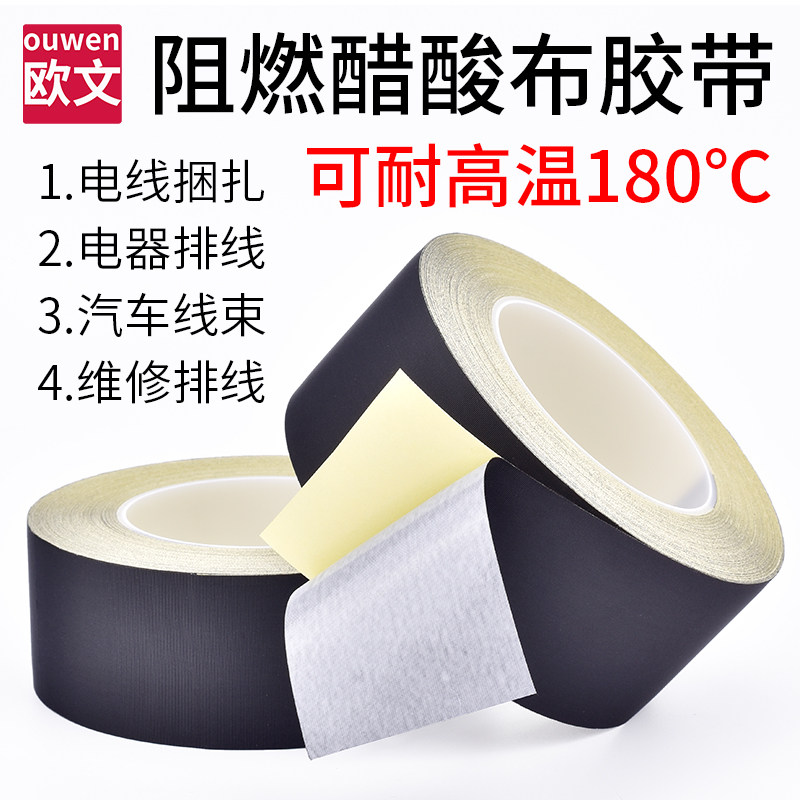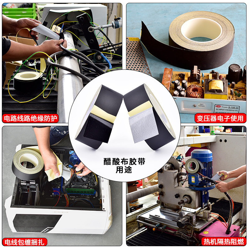 阻燃耐高温绝缘性能好黑色醋酸胶布电器耐捆扎加粘不起翘液晶维修屏线固定用维修汽车线束无尘车间用醋酸胶带