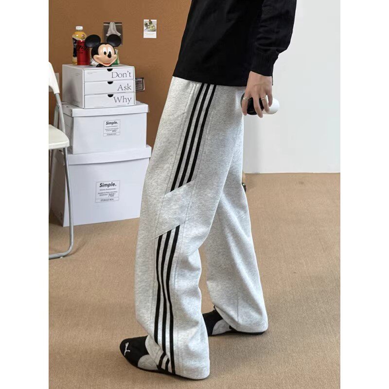 美式条纹2026休闲卫裤男士秋冬加绒新款户外运动直筒长裤子男