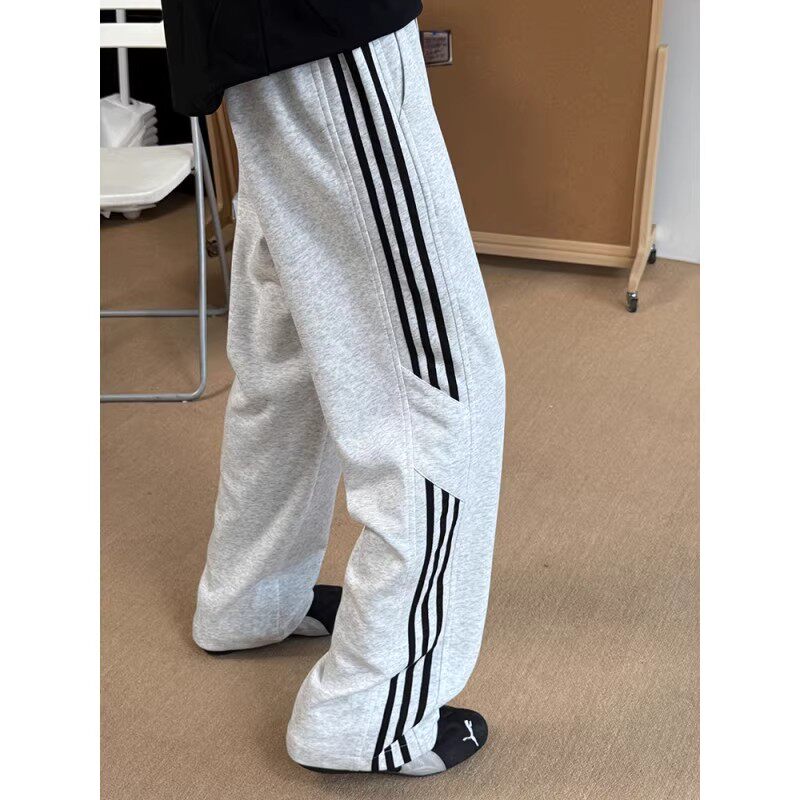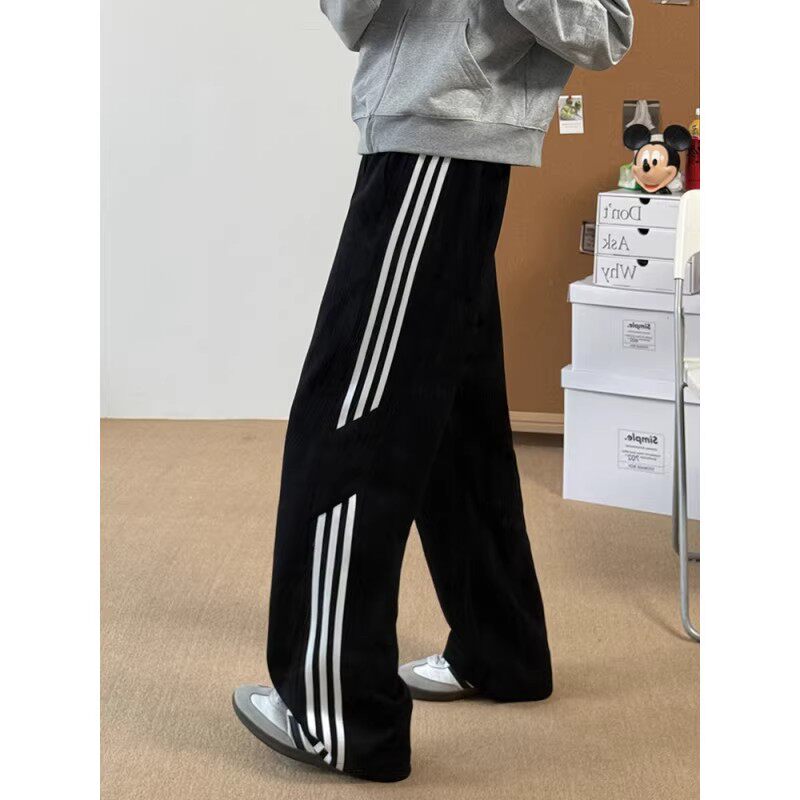 Hipanda你好熊猫秋冬新款宽松卫裤休闲长裤男女同款直筒裤阔腿裤