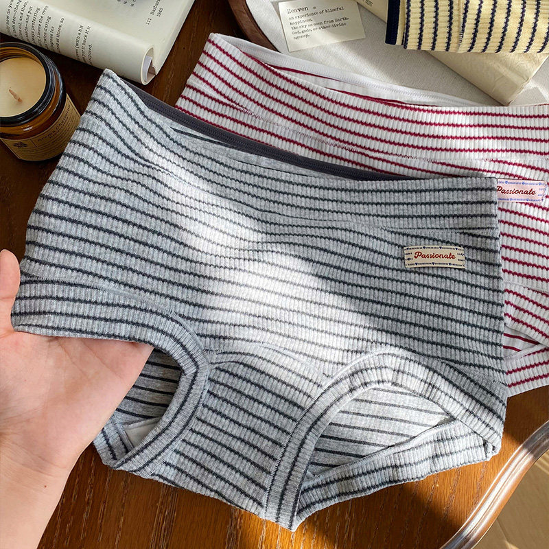 加长裆A类复古条纹运动风内裤女生纯棉中腰抗菌包臀透气平角裤头