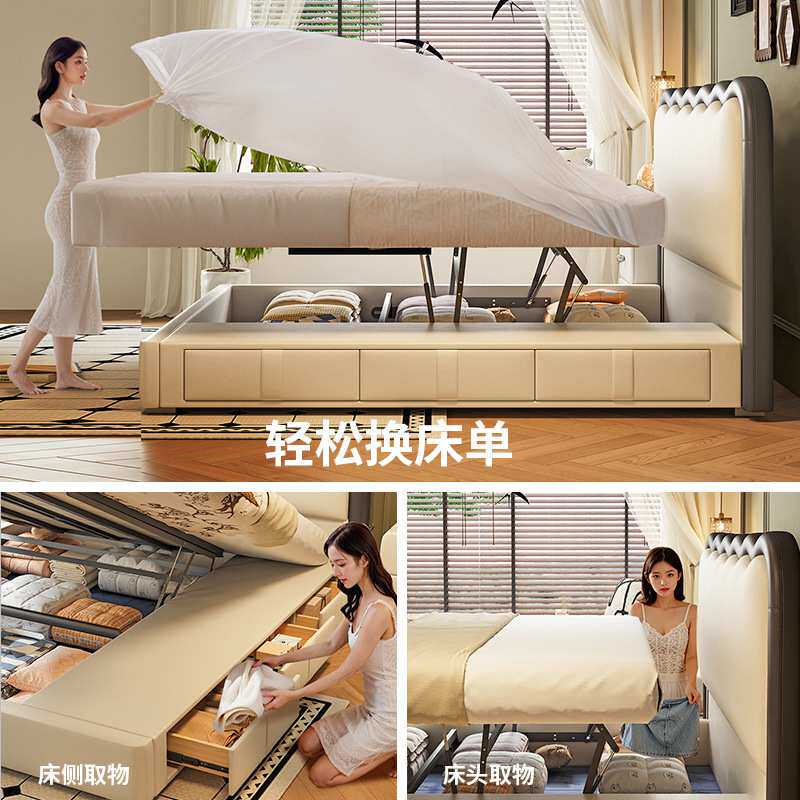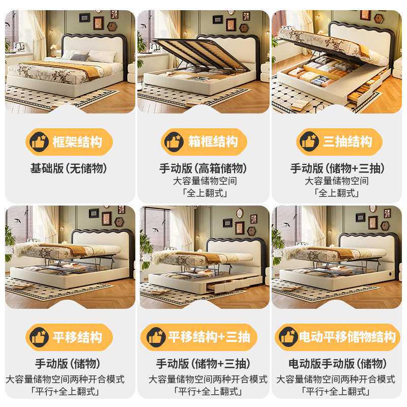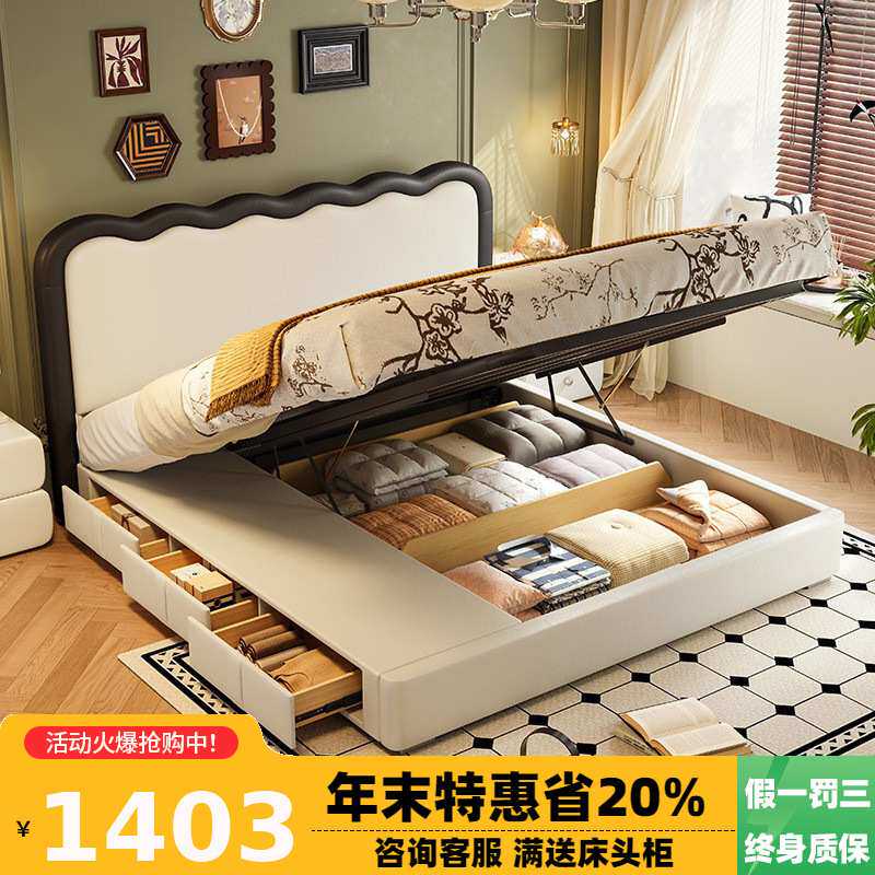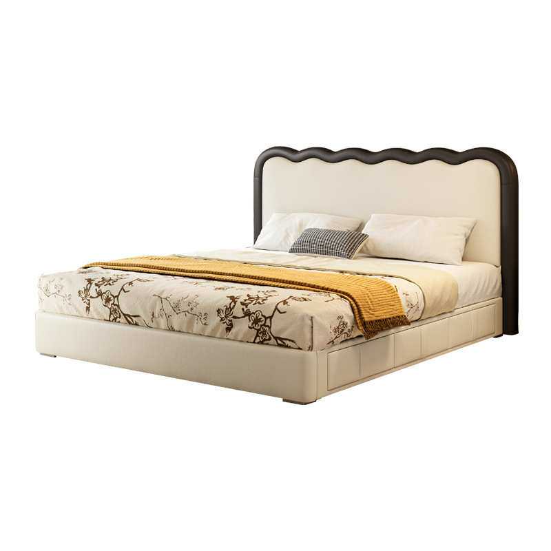 冬熊复古风波浪床猫爪皮主卧室双人涟漪皮艺齐边高箱储物三抽屉床