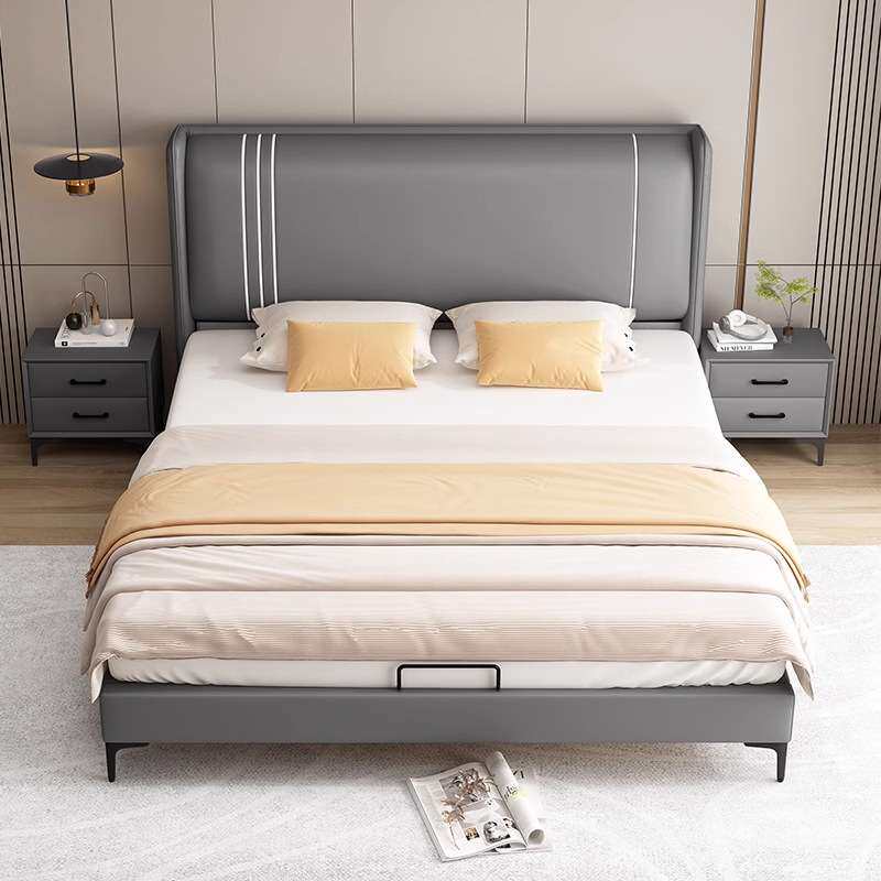 喜挚简约1.5米单人皮艺床家用现代1.8米主卧双人大床储物皮床