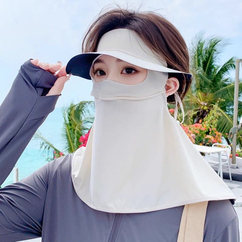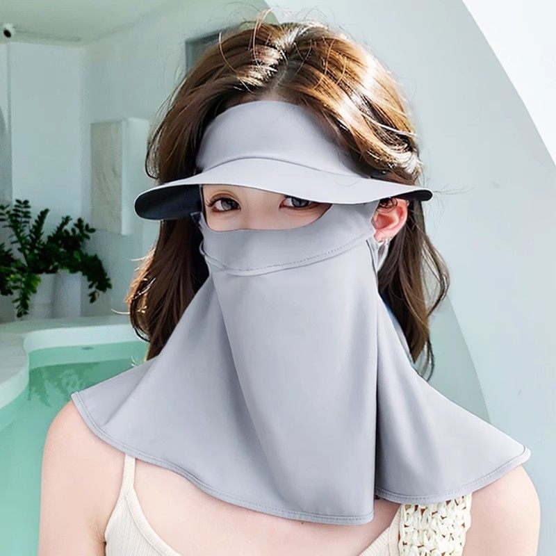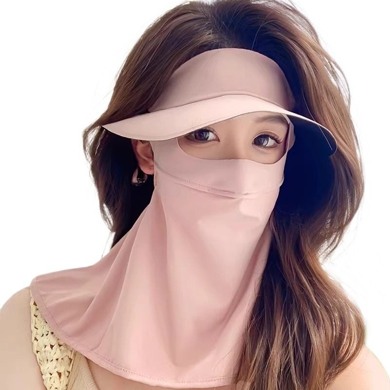 遮全脸防晒面罩女夏季防紫外线口罩冰丝透气遮阳带帽檐脸基尼护颈