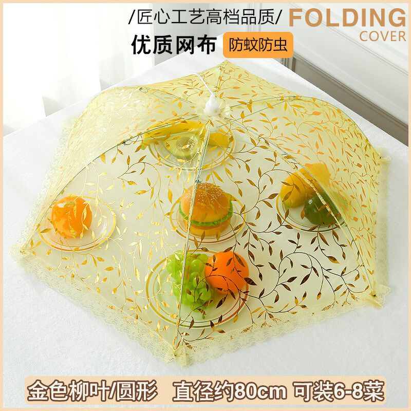 欧式家用菜罩可折叠圆形餐桌罩厨房可水洗防蝇防尘收缩盖菜伞套装