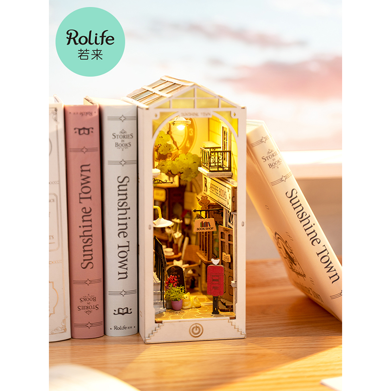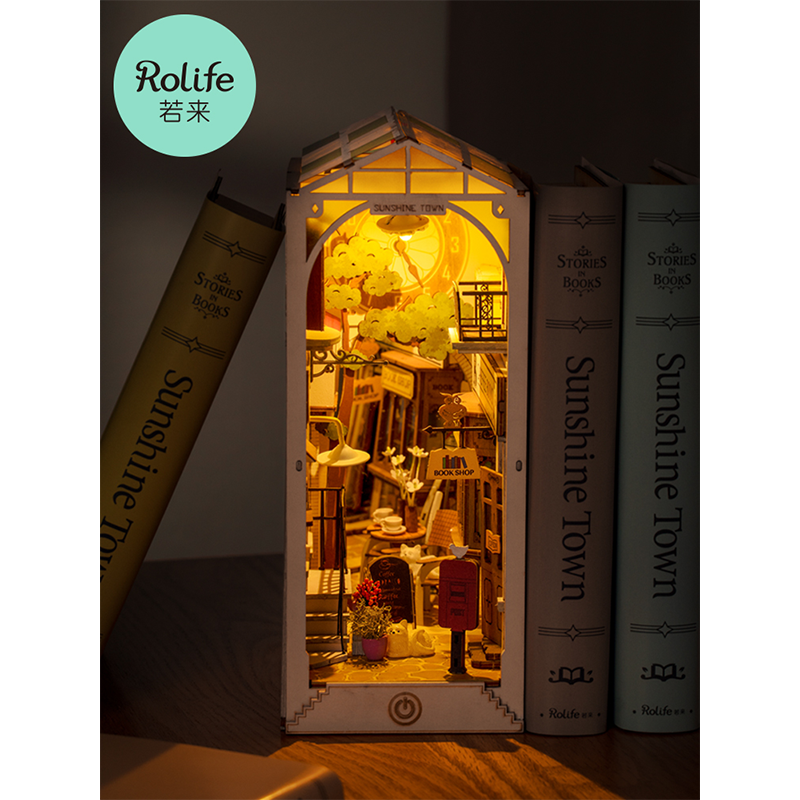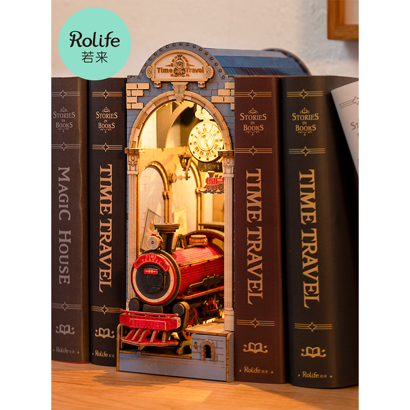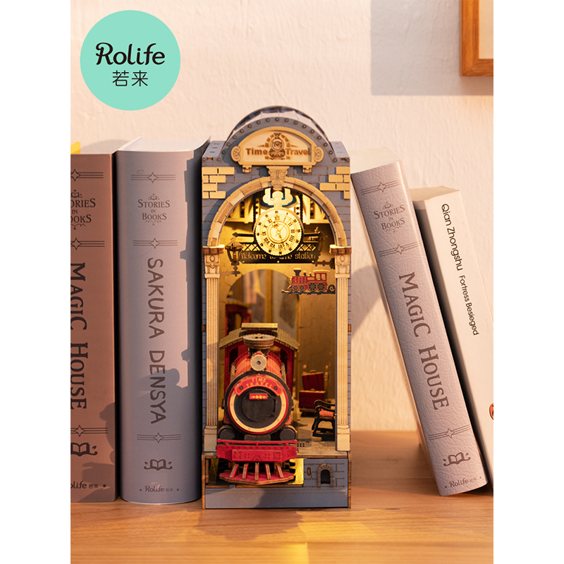若来书立樱花电车 日落小巷 时光站台木质拼装书立3D立体拼图节日礼物 西西弗书店
