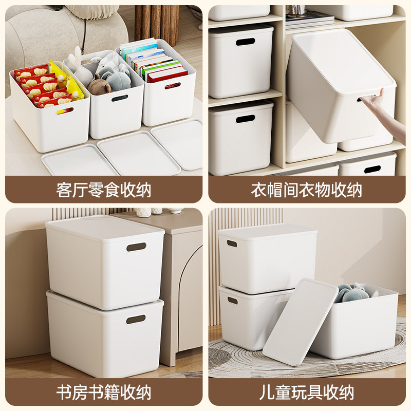 带盖收纳箱4个装家用桌面杂物玩具零食收纳柜大号衣服整理箱