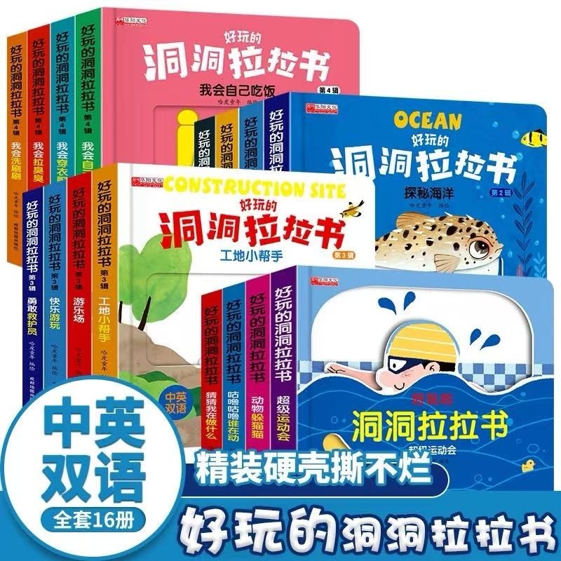 全16册宝宝推拉机关书好玩的洞洞拉拉书幼儿启蒙认知早教书适合一两岁半婴儿早教绘本0-1到2-3岁儿童书籍撕不烂益智玩具翻翻书