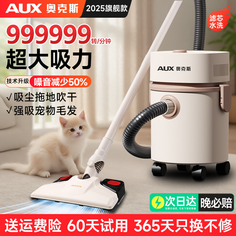 奥克斯吸尘器家用小型手持大功率工业开荒保洁猫毛拖把二合一体机