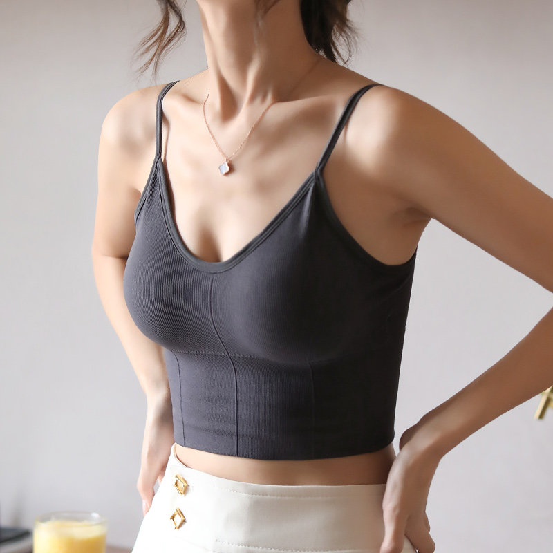 半练美背吊带无痕背心女带胸垫免穿文胸内搭打底白色外穿