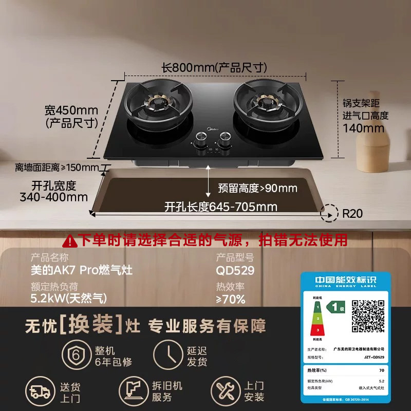 超一级能效 5.2kW 铜火盖 免费扩孔 长质保