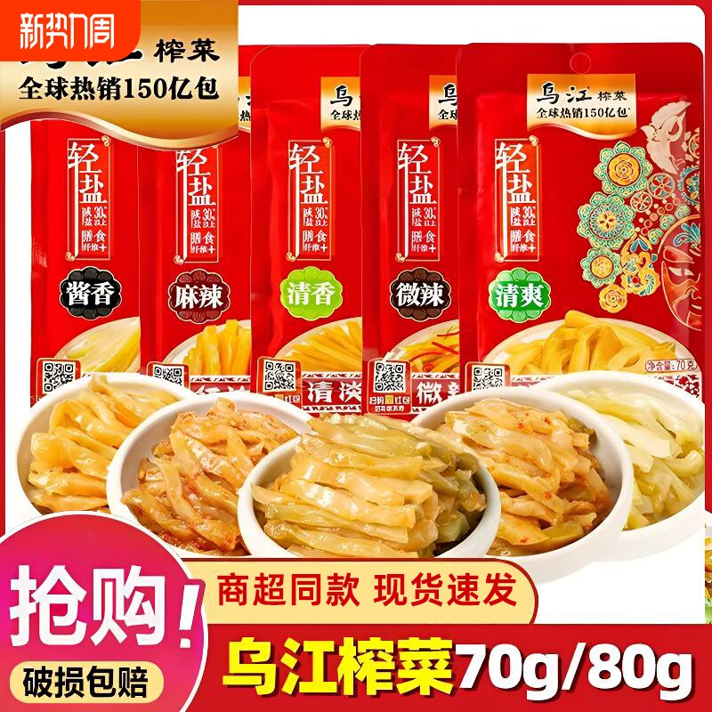 乌江榨菜涪陵清爽清淡70g袋装轻盐80g微辣榨菜丝佐餐开味下饭咸菜