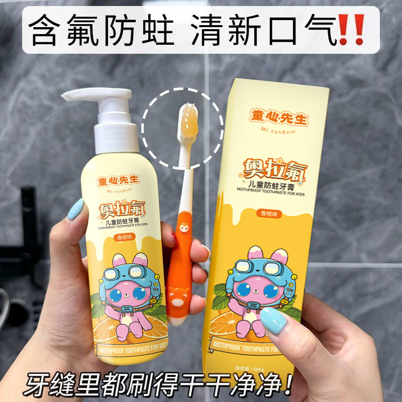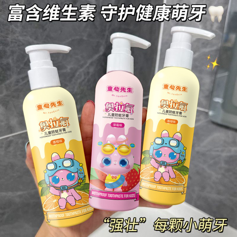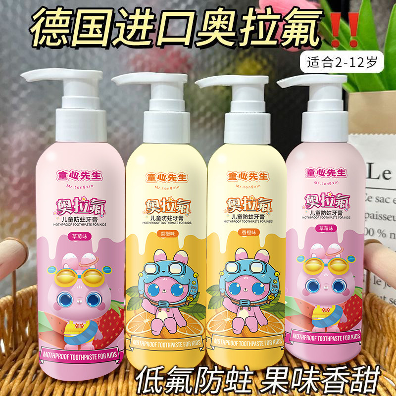 嘴奥拉氟儿童防蛀牙膏按压式2-3-6-12岁婴儿宝宝专用预防固齿牙齿
