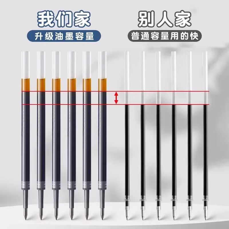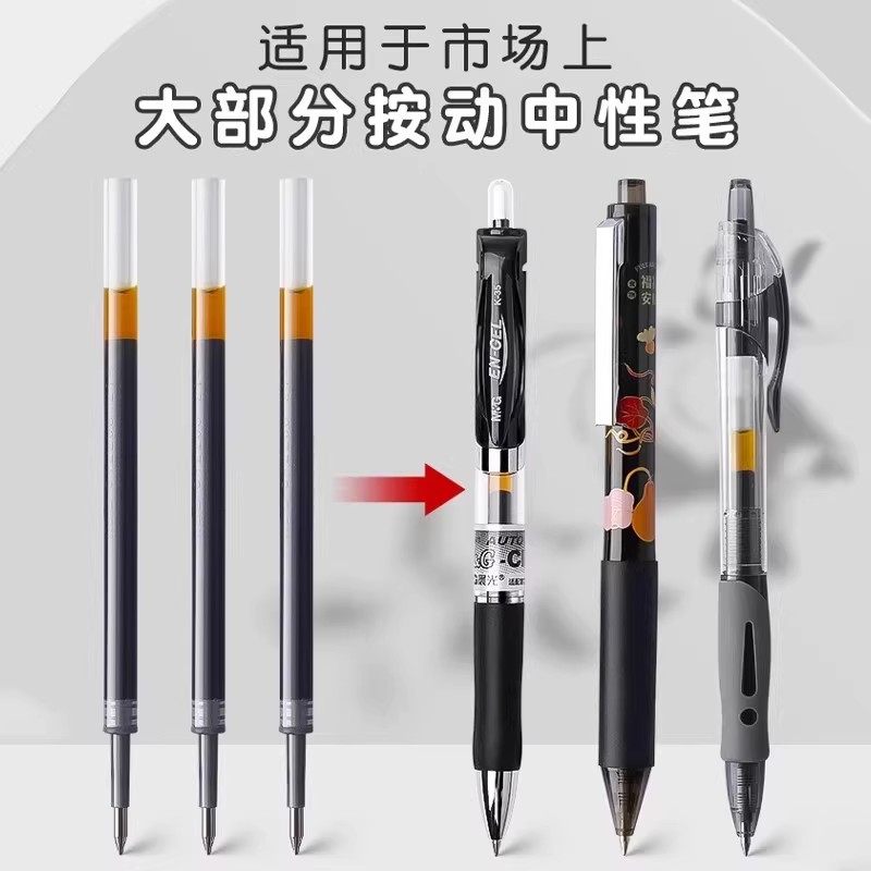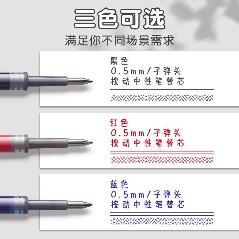 100支按动笔芯0.5子弹头速干摁动中性芯圆珠笔黑色大容量刷题笔替换笔芯碳素笔水笔白色按压式自动笔蕊批发