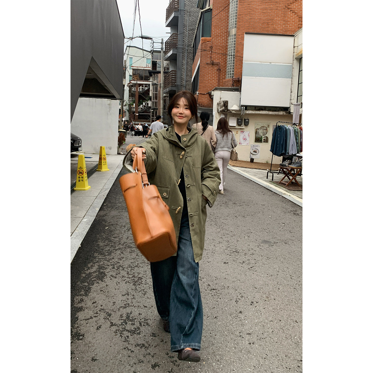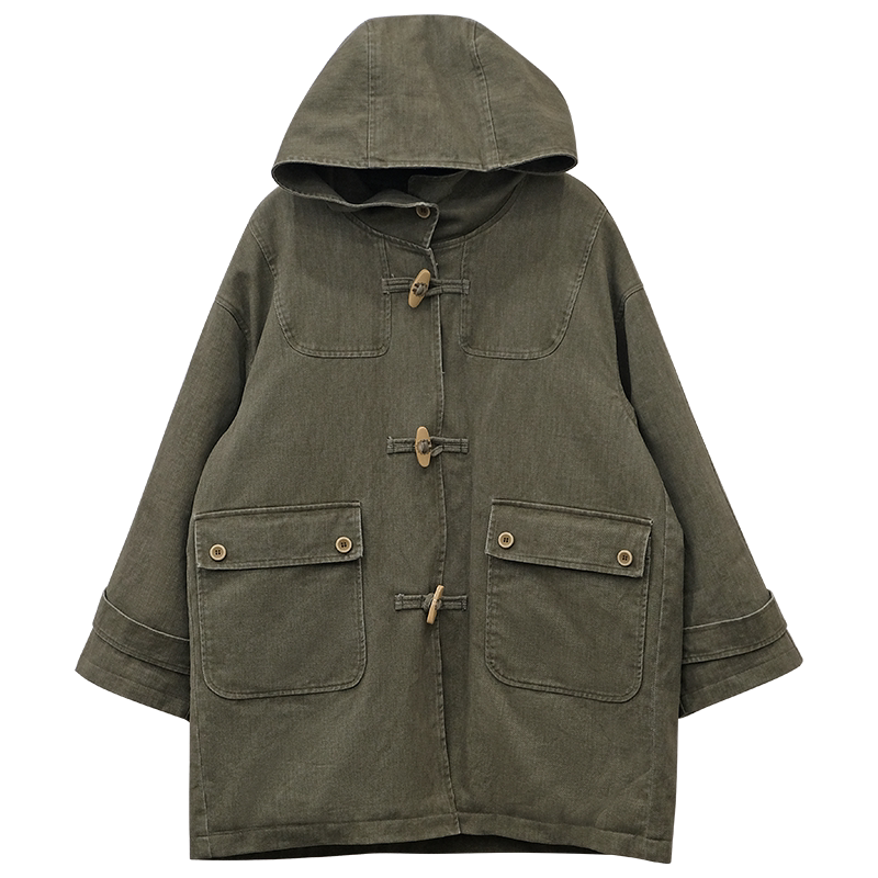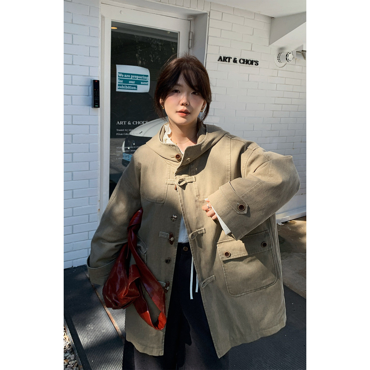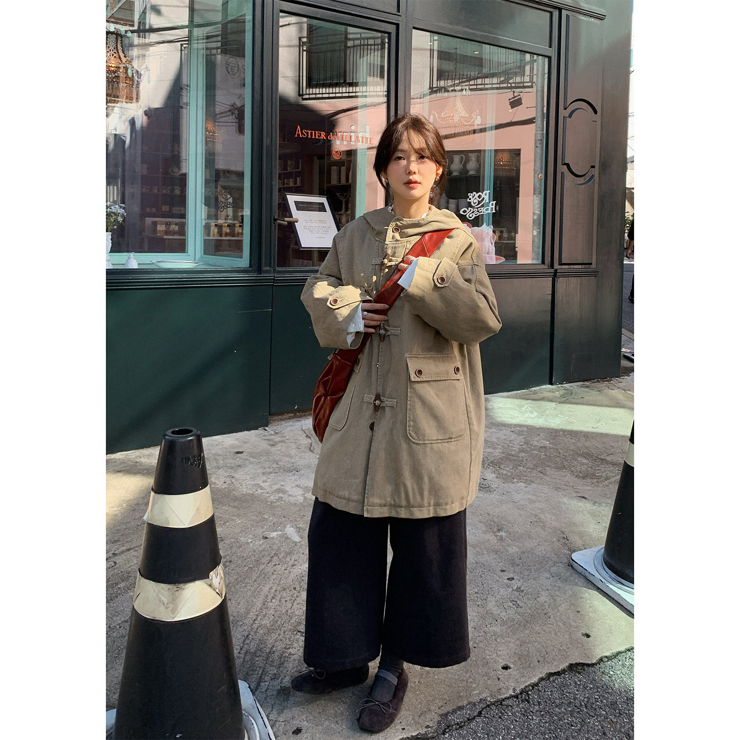 一三良品小个子 复古连帽牛角扣中长款工装风白鸭羽绒服外套女冬