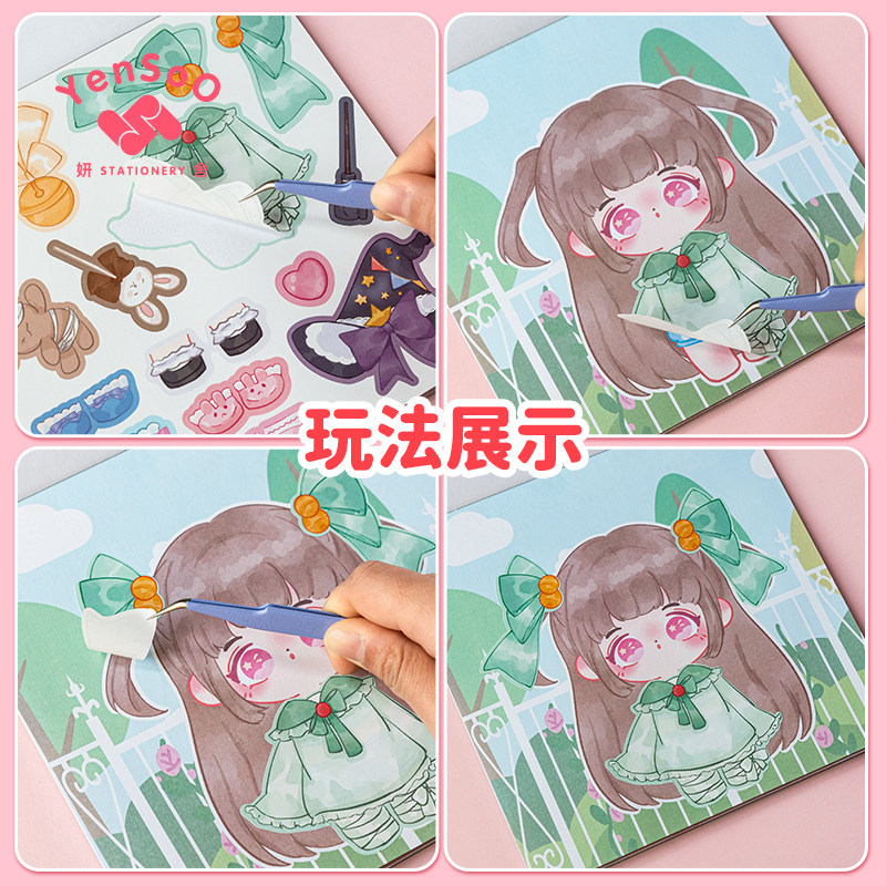 萌崽新款学霸学渣果冻贴纸安静书儿童免裁剪手工粘贴DIY女孩趣味玩具