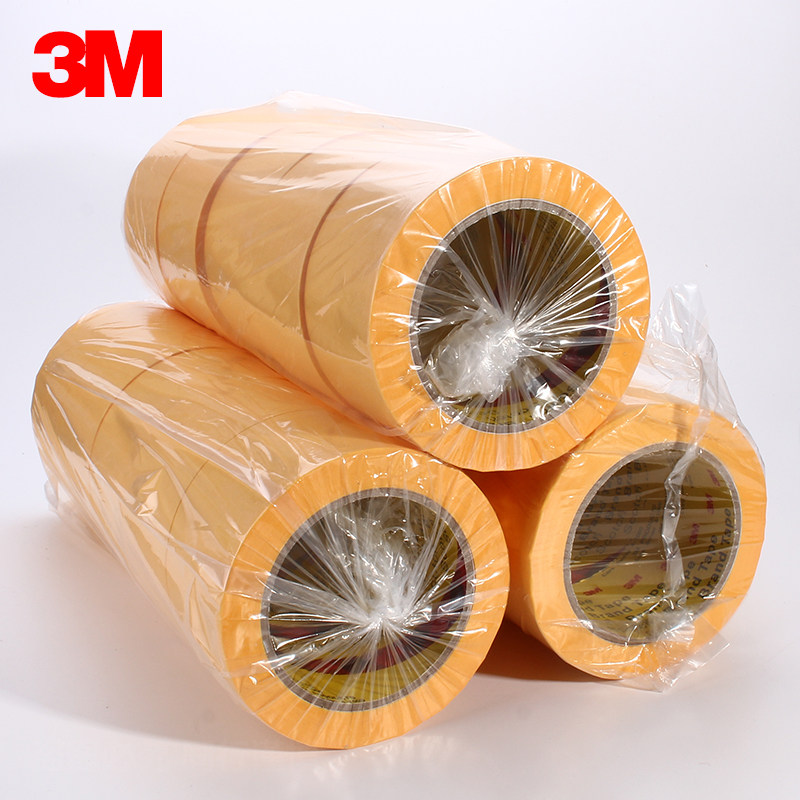 3M244美纹纸胶带耐高温汽车遮蔽喷漆分色保护撕下无痕烤炉波峰焊模型遮盖船舶喷涂黄色和纸美国正品美纹胶纸