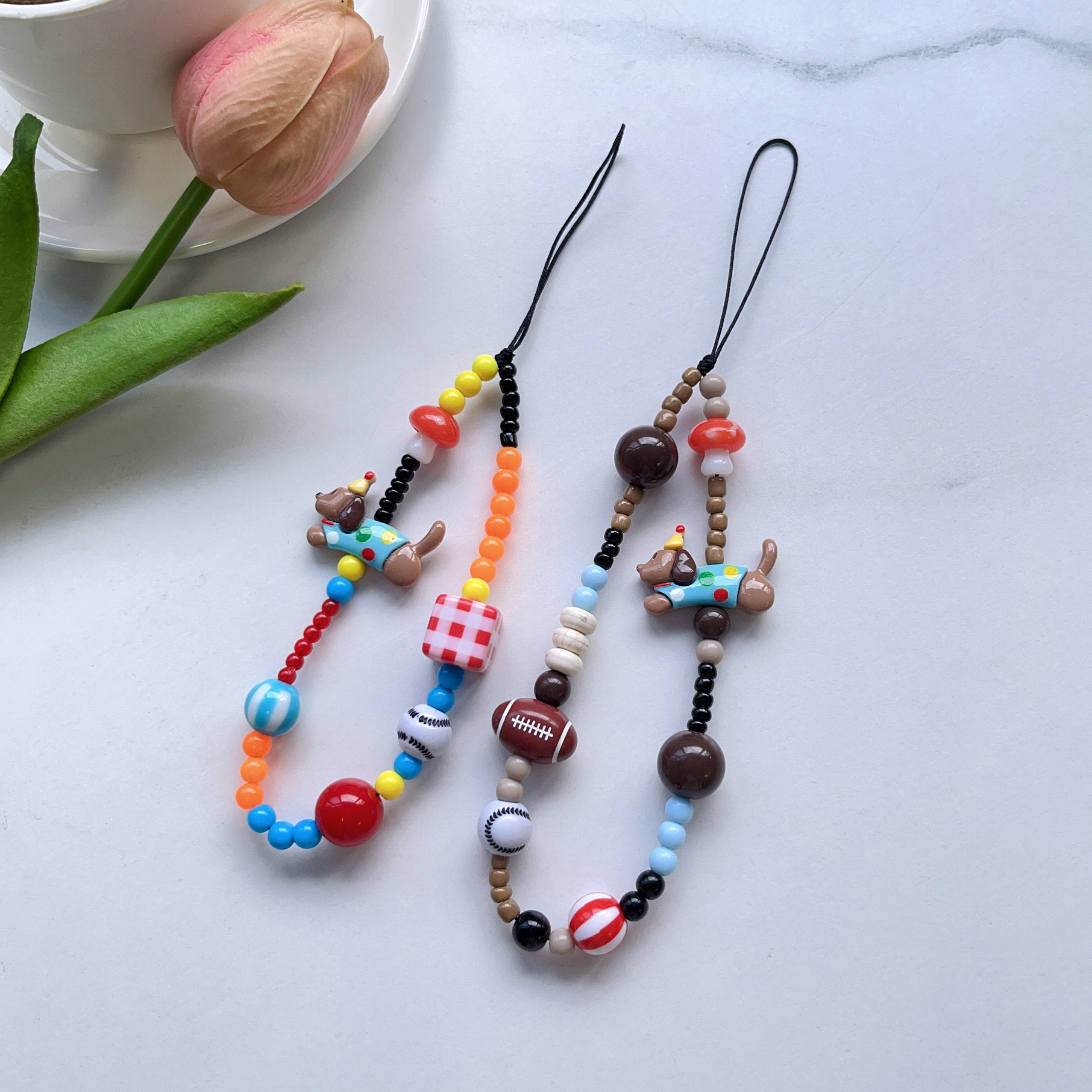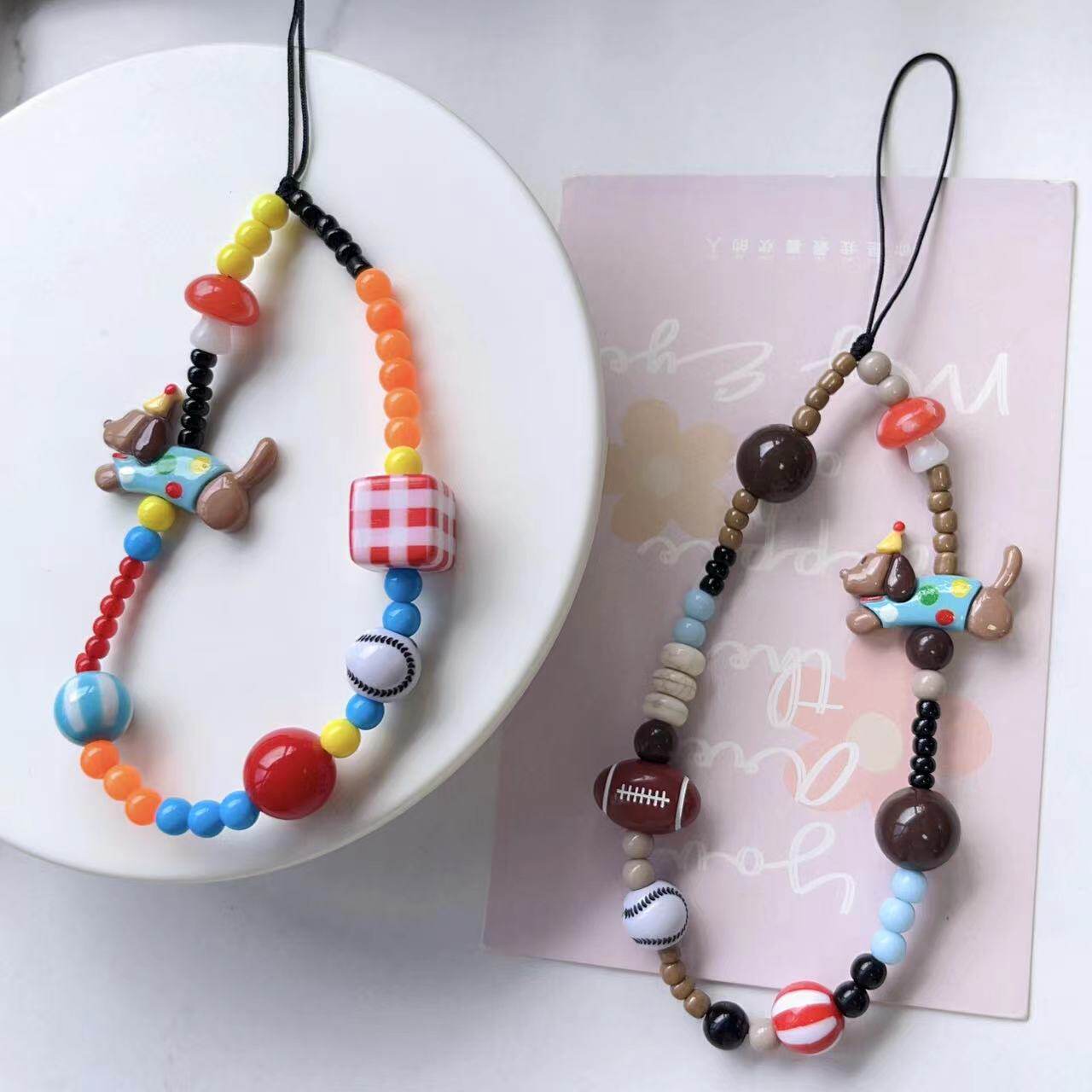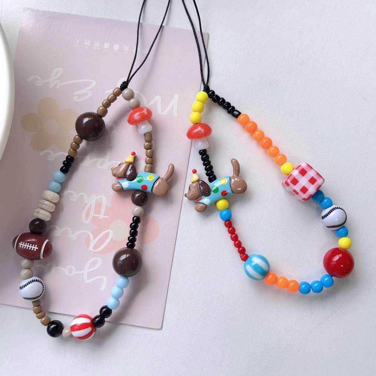 手机挂绳DIY卡通立体方格腊肠狗立体橄榄球腊肠狗挂手腕可手提女款通用包包钥匙扣小众手机结实耐用手机挂绳