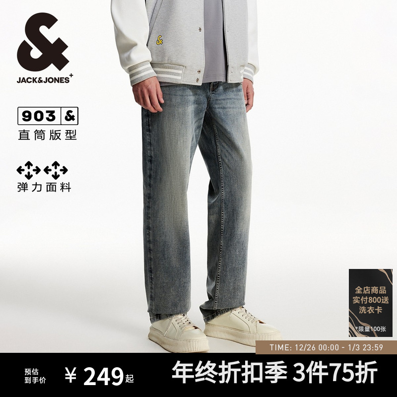 903杰克琼斯男装水洗猫须YKK拉链直筒牛仔裤长裤子下装秋季男款