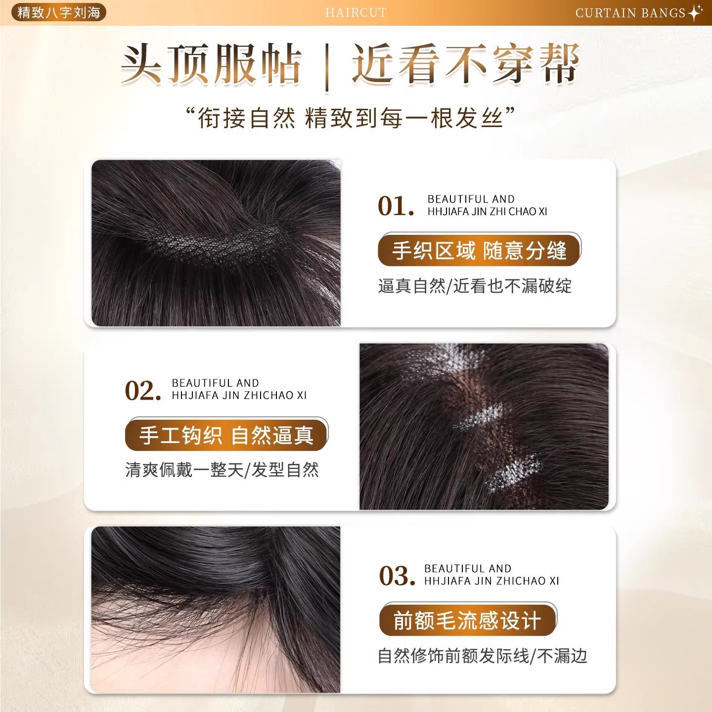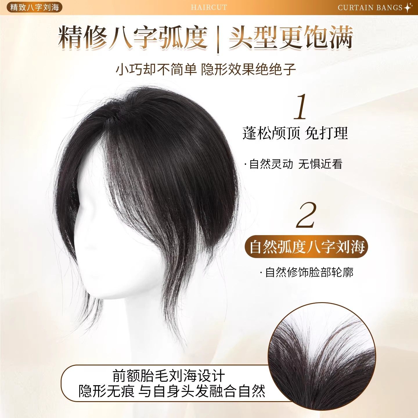 八字刘海假发女片头顶补发仿真发蓬松颅顶遮白发自然增发量假刘海