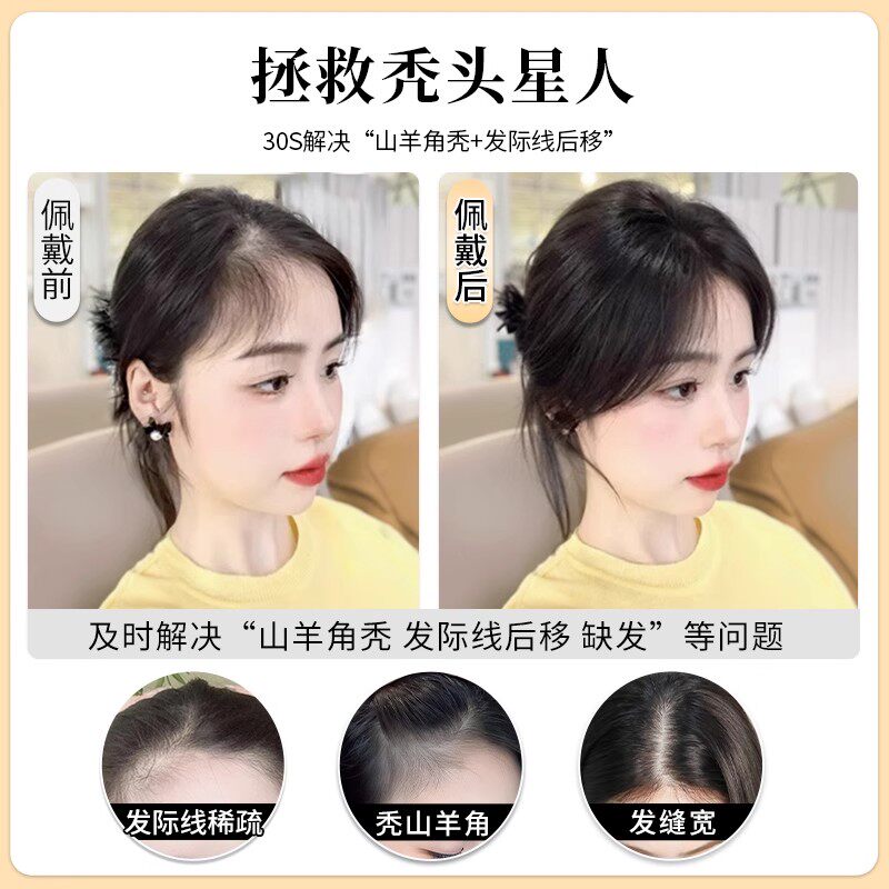 胎毛刘海假发女片头顶遮高颅顶真发无痕发际线贴八字轻薄前额蓬松