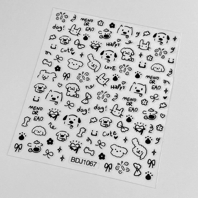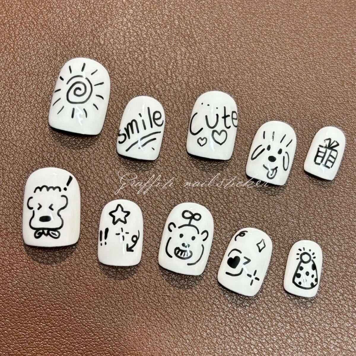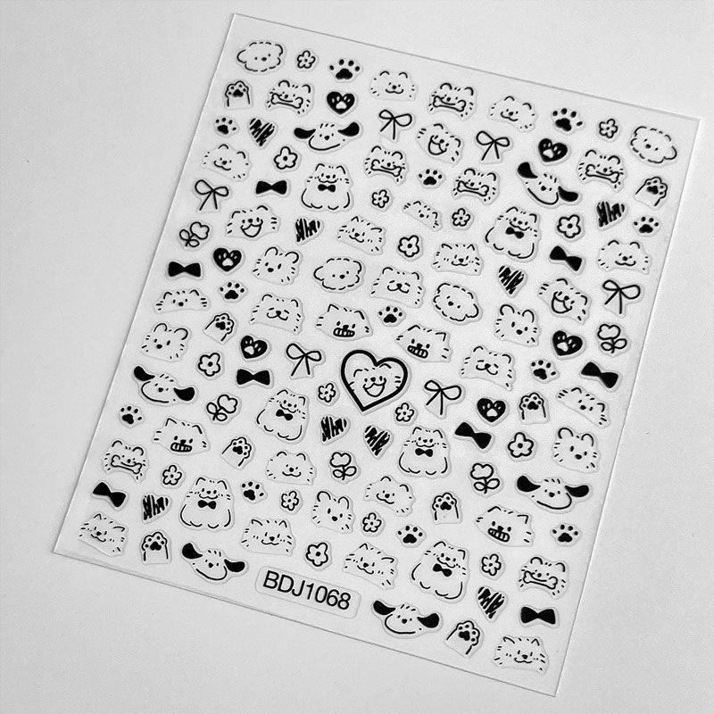 网红爆款ins涂鸦卡通猫咪美甲贴纸可爱爱心蝴蝶结指甲贴平面装饰