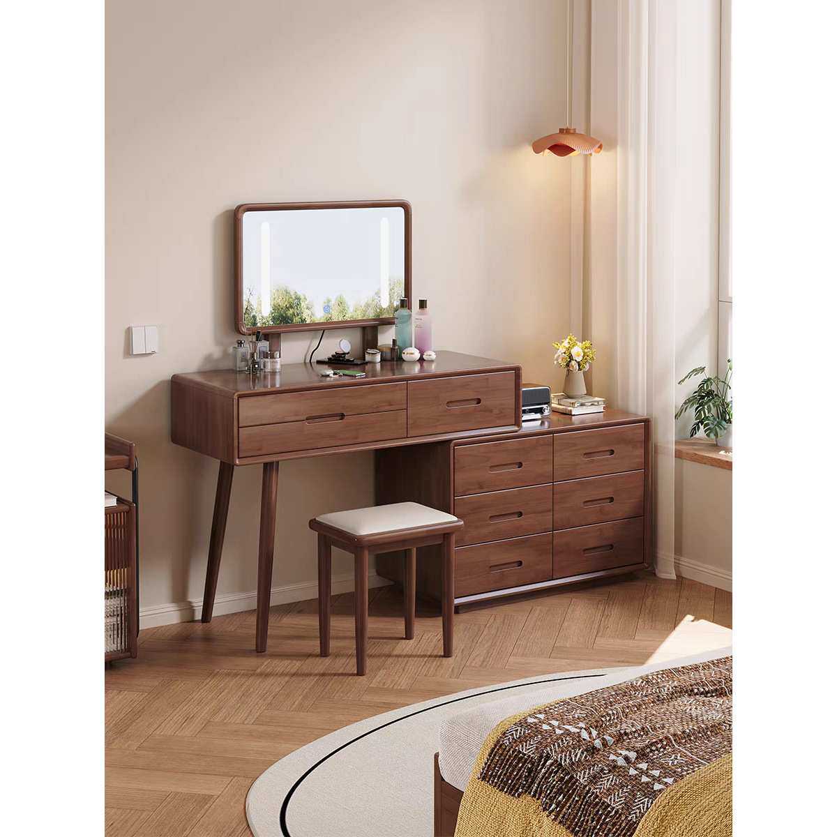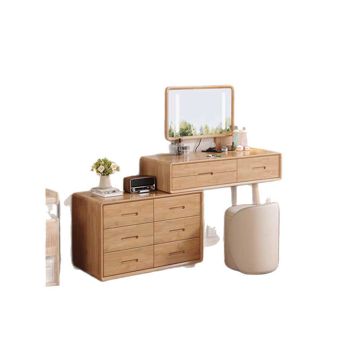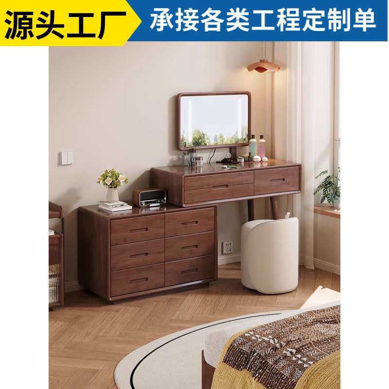 实木梳妆台斗柜一体化妆桌简约现代卧室可伸缩转角床尾六斗收纳柜