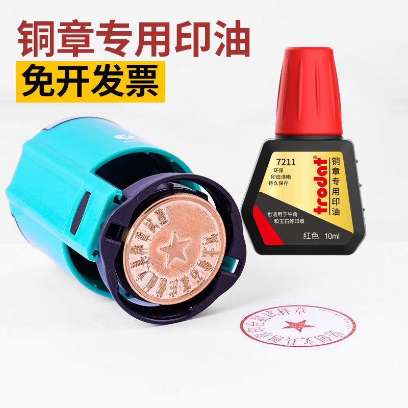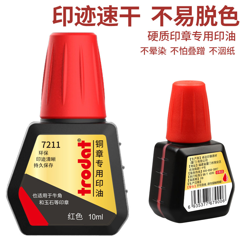 卓达7211铜章用红印油硬质印台材料金属牛角印油10ml回墨翻转章油