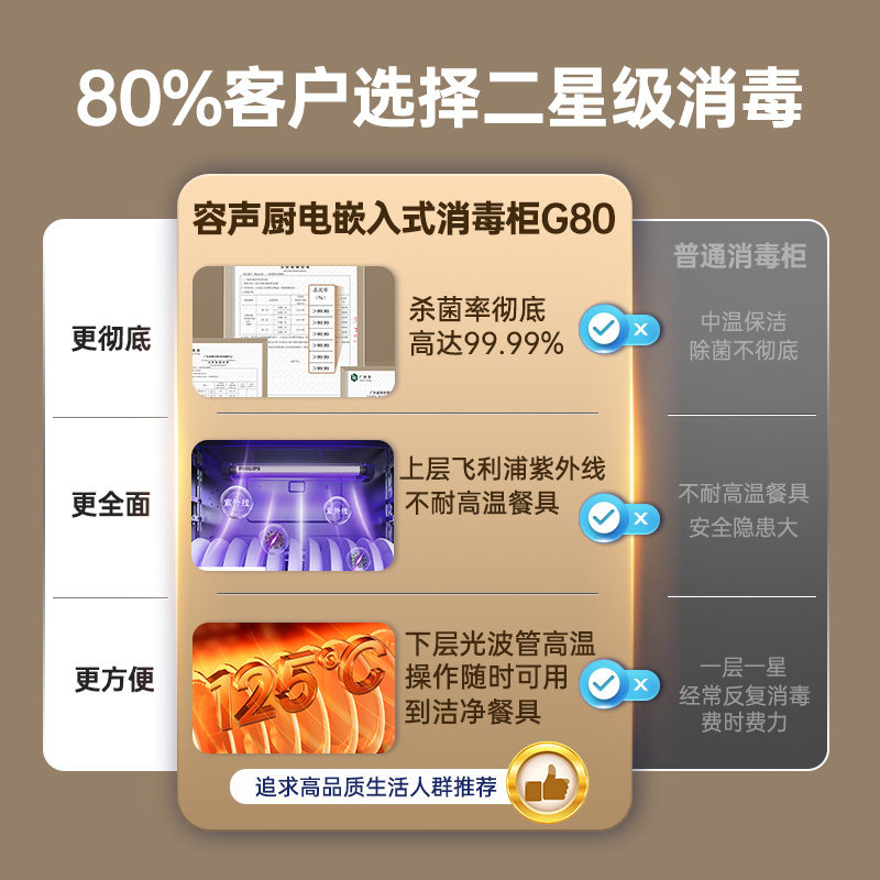 【热风304层架】容声消毒柜家用嵌入式大容量不锈钢消毒碗柜G80