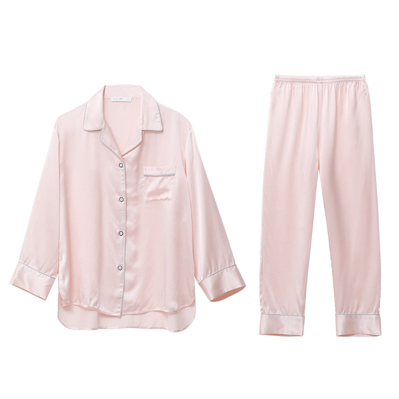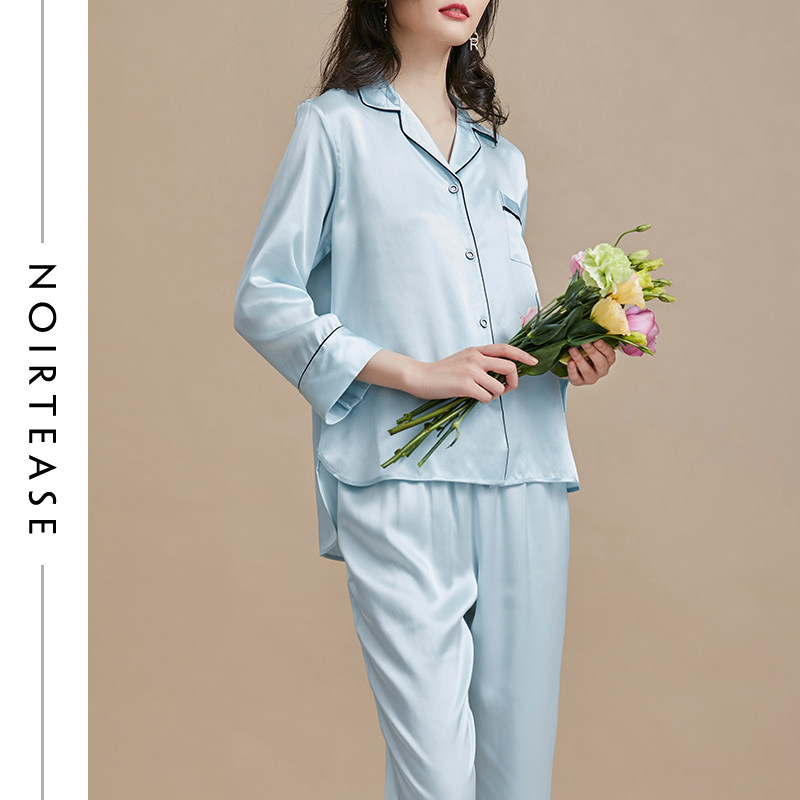 性感真丝睡衣女夏季长袖两件套100%桑蚕丝女士可外穿家居服套装
