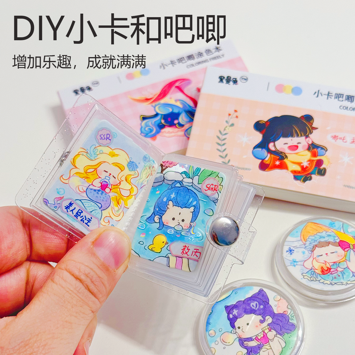哪吒涂色本小马涂鸦本卡册手工素材包卡册迷你卡吧唧素材 黑曼兔