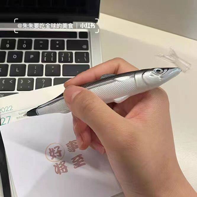 上课摸鱼笔仿真咸鱼圆珠笔黑色中性笔ins学生文具笔科技感搞怪潮