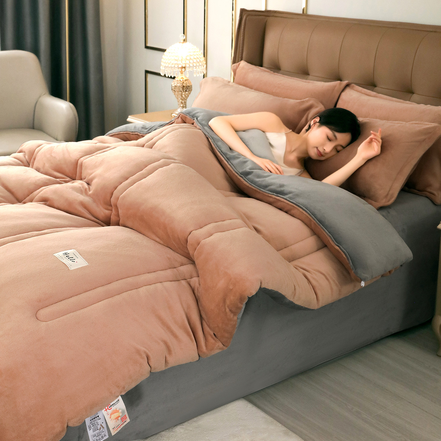 欧秀心冬季加厚牛奶绒冬被水晶绒法莱绒保暖被芯双面绒棉宿舍被子