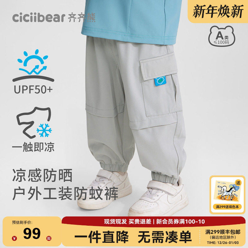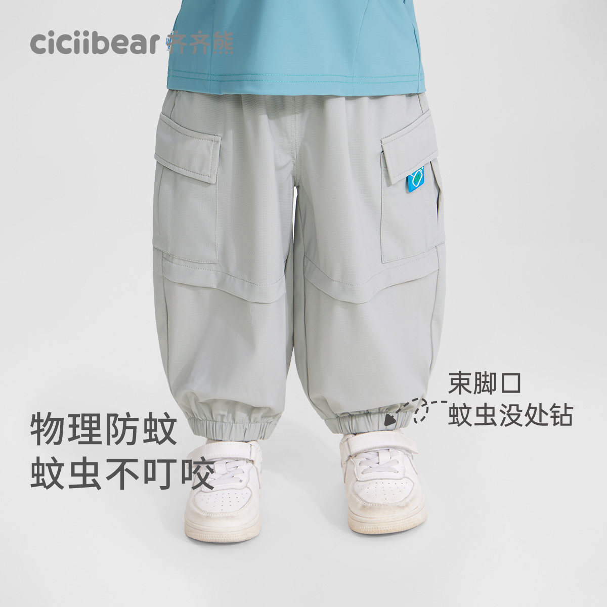 [户外凉感防晒裤]齐齐熊男童防蚊裤夏季薄款宝宝裤子运动裤工装裤
