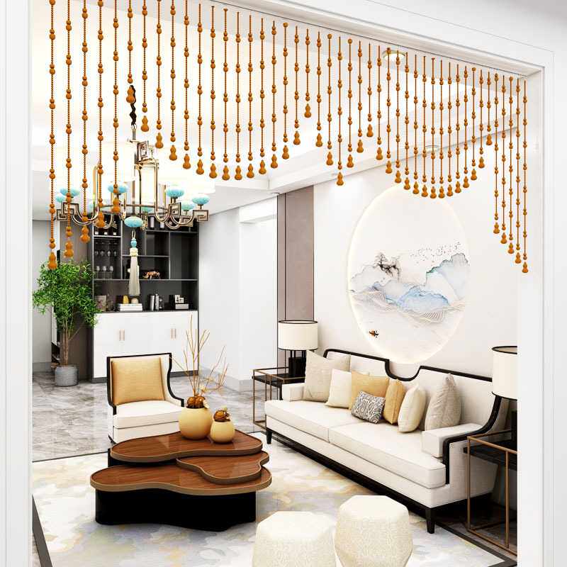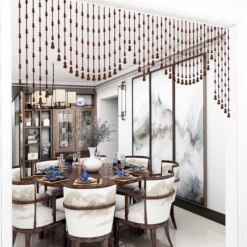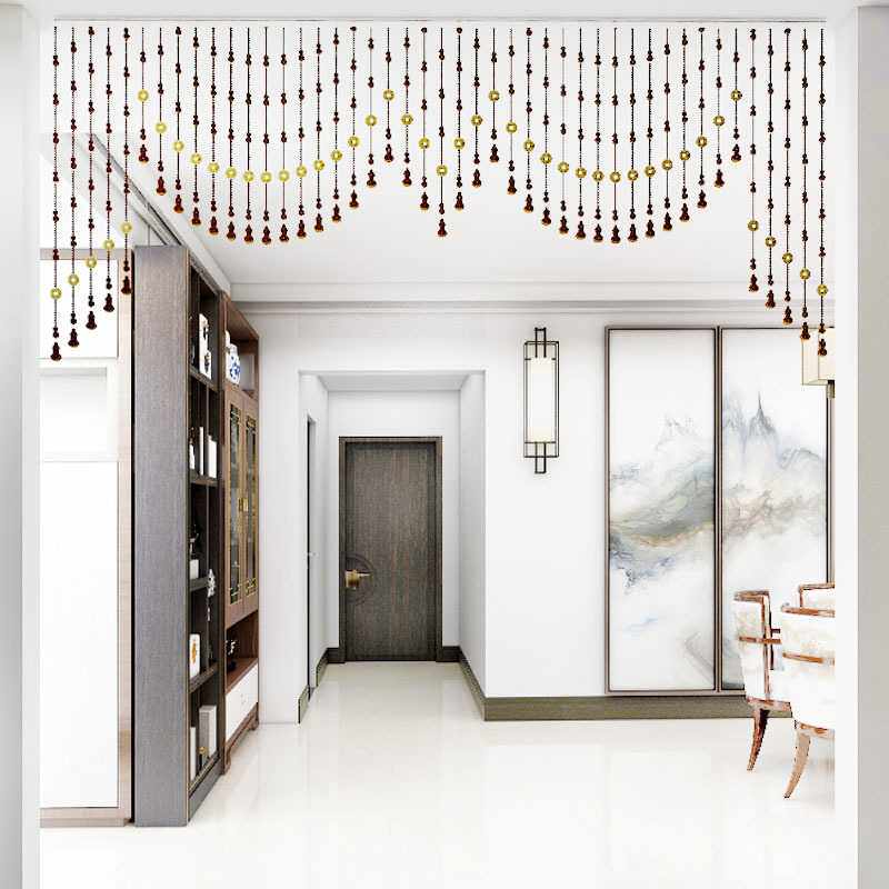 桃木帷幔造型珠帘实木客厅阳台隔断成品珠帘门帘子免打孔安装