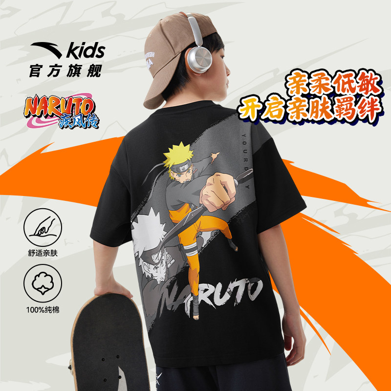 安踏儿童火影联名纯棉短T丨亲肤舒适男大童短袖2025夏季新款短T袖