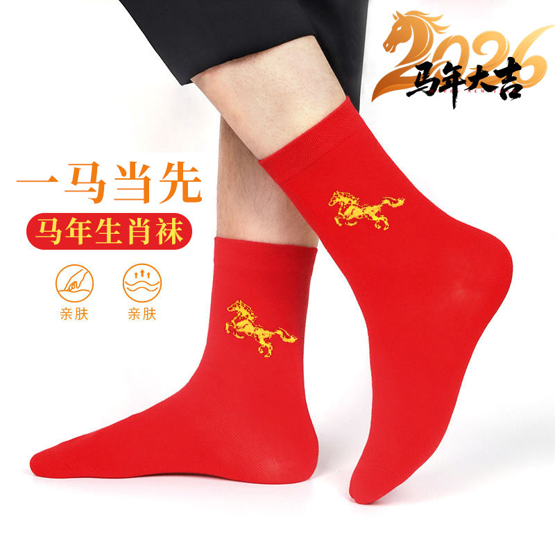 本命年大红袜子马年红袜福字袜结婚男女情侣棉袜秋冬款老年人新款