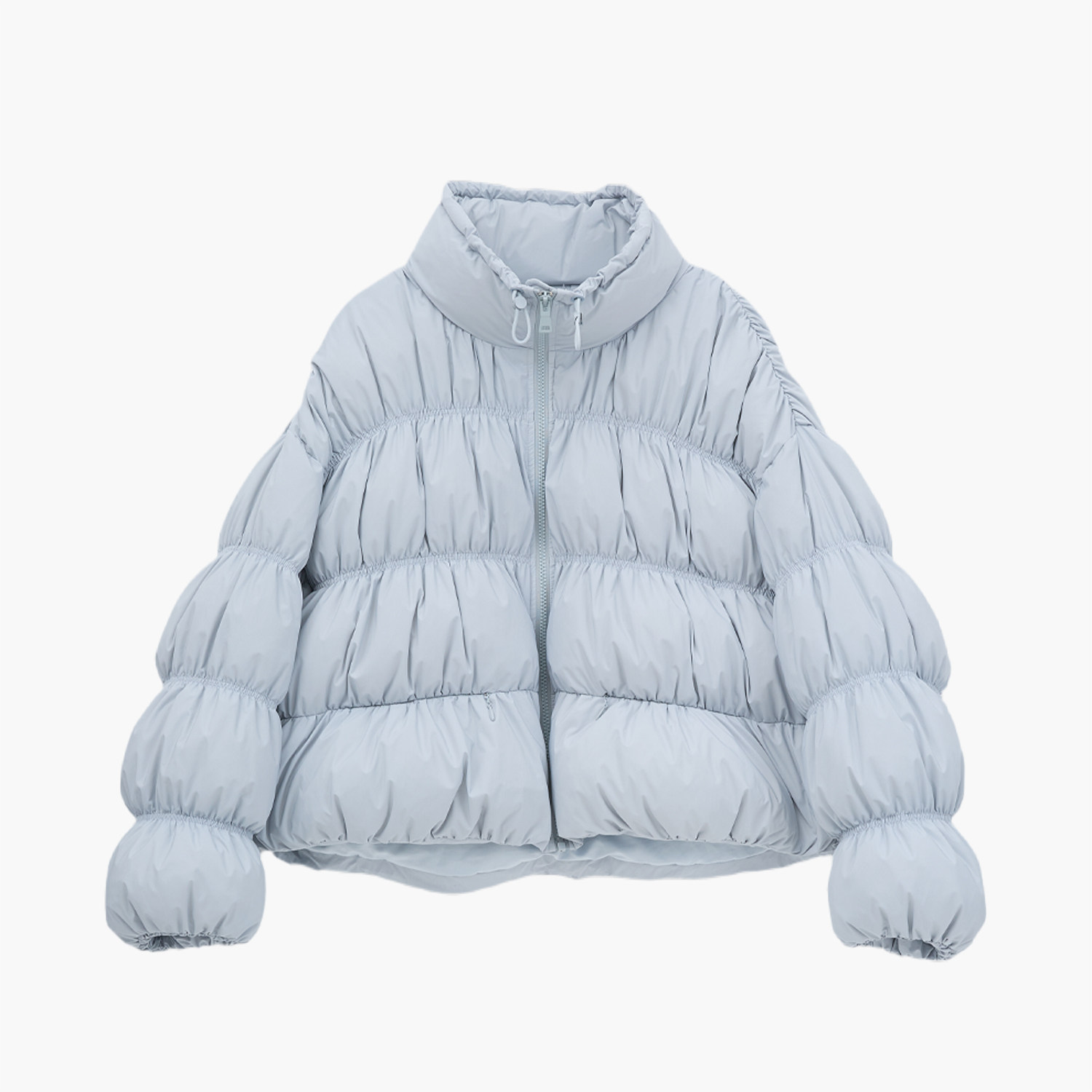 爱居兔花苞短款羽绒服女2025年冬季新款立领防风抗寒泡泡款外套